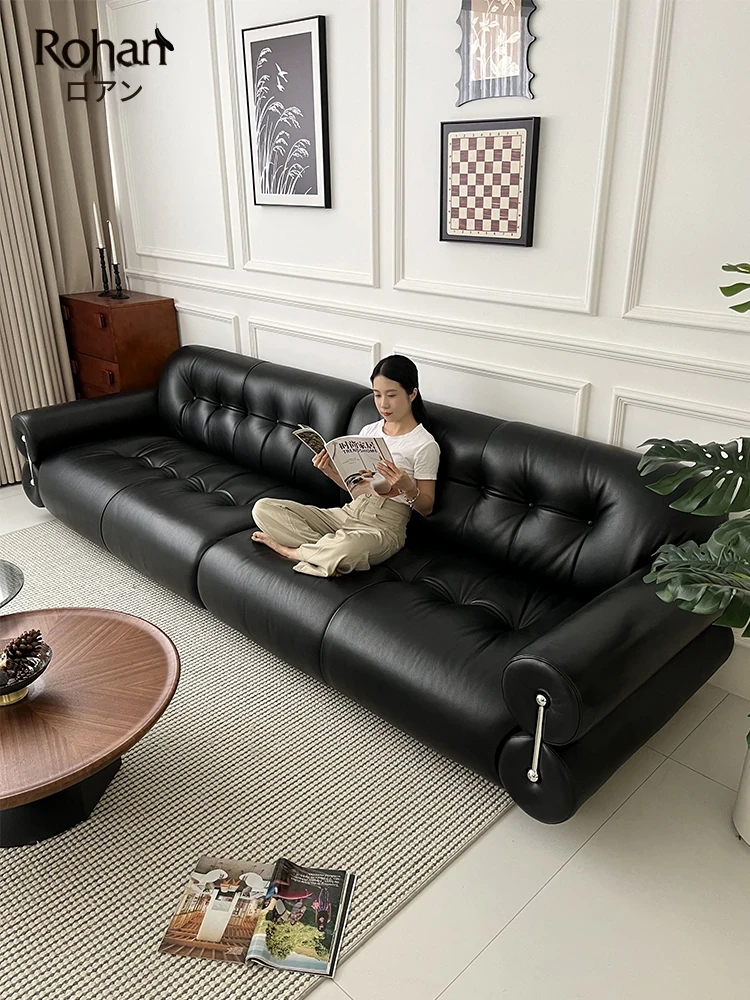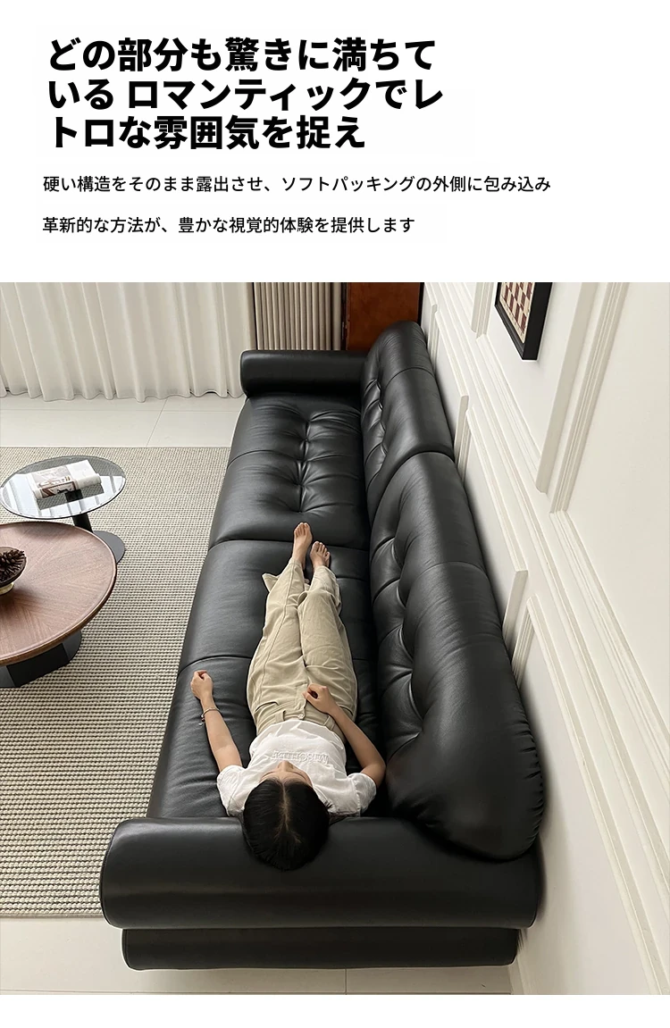 ロアン中古風黒糖雲朵ソファ フランスアンティーク真皮ストレート3人掛け軽奢デザイナーソファ - 優雅な空間を演出する、贅沢なひとときのための完璧な選択!