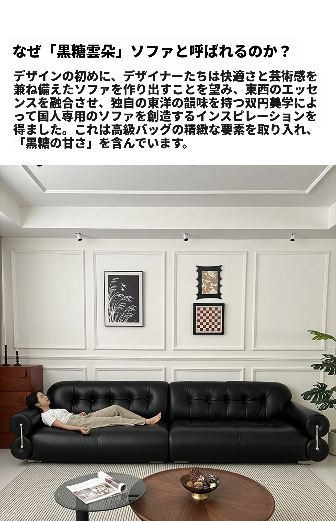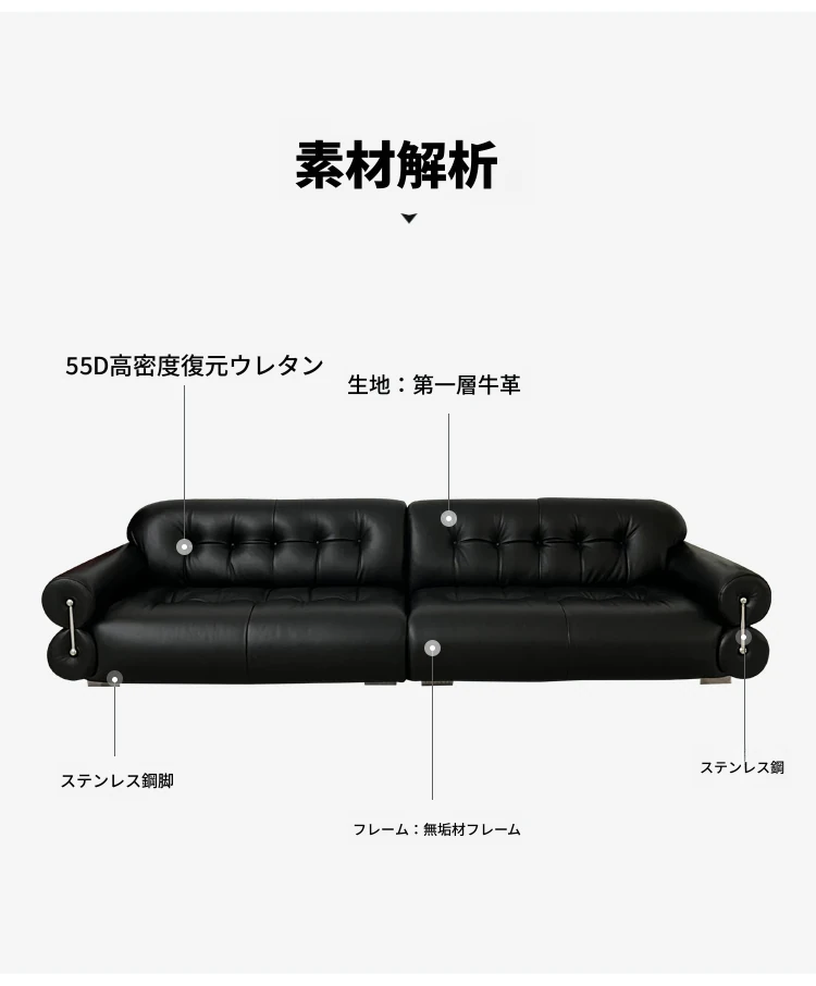 3メートル 黒糖雲朵ソファ ヘッドレザー 本革接触面