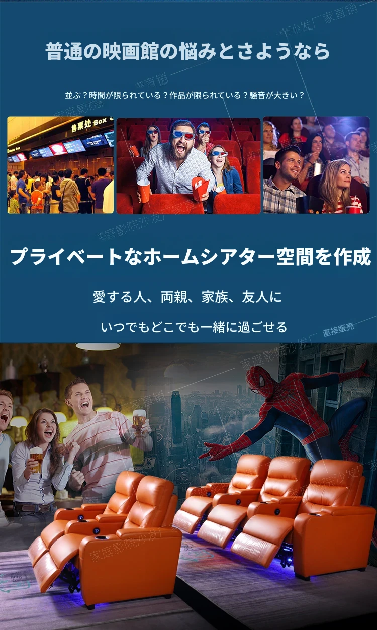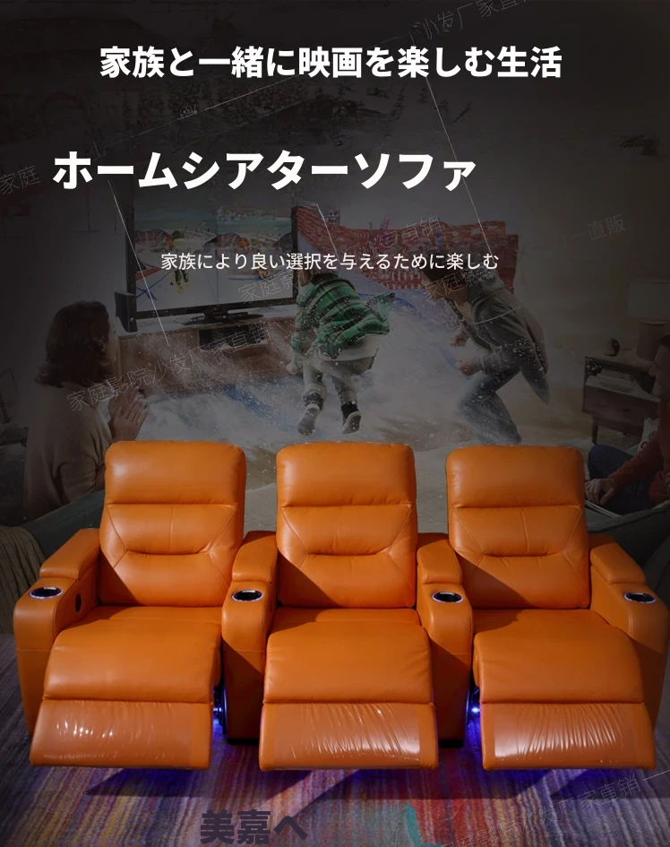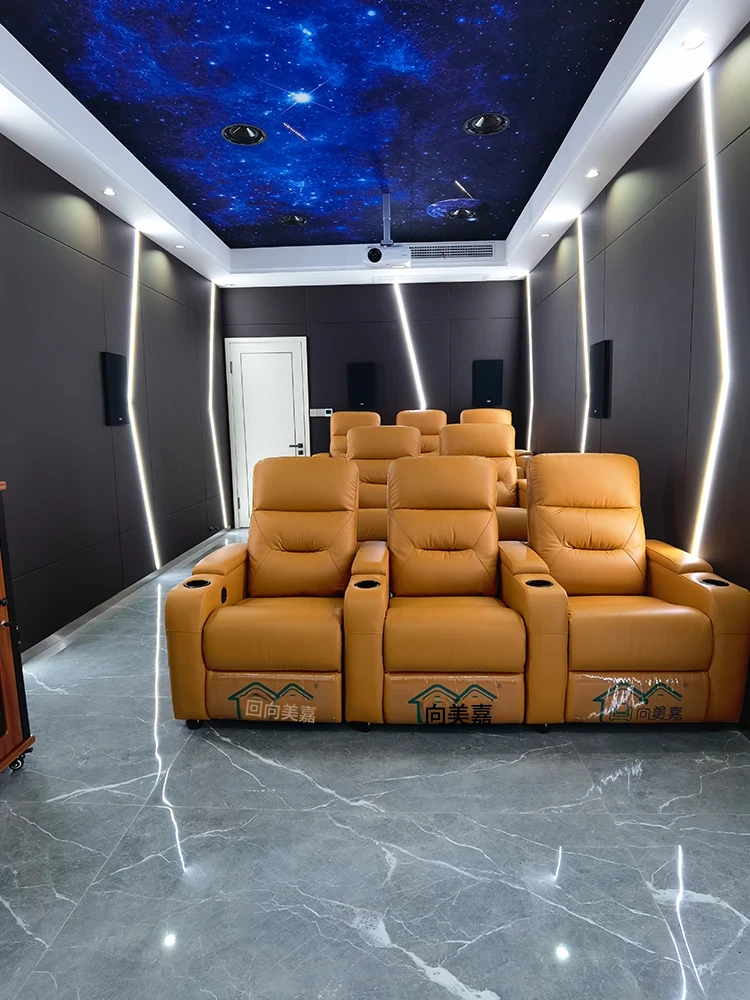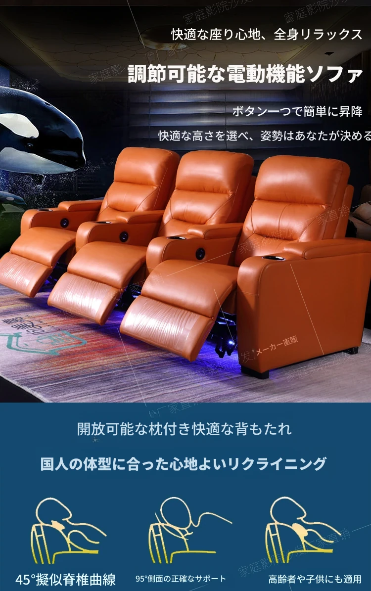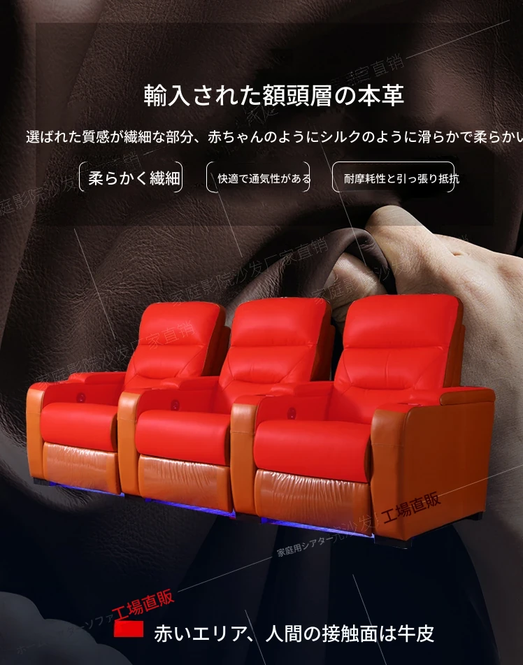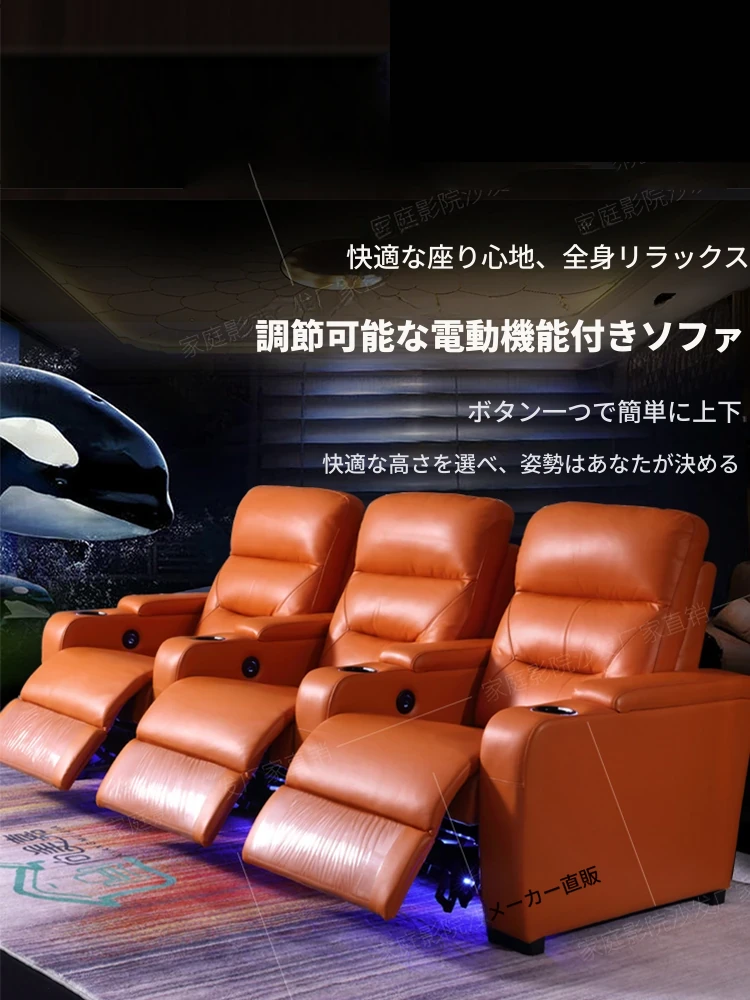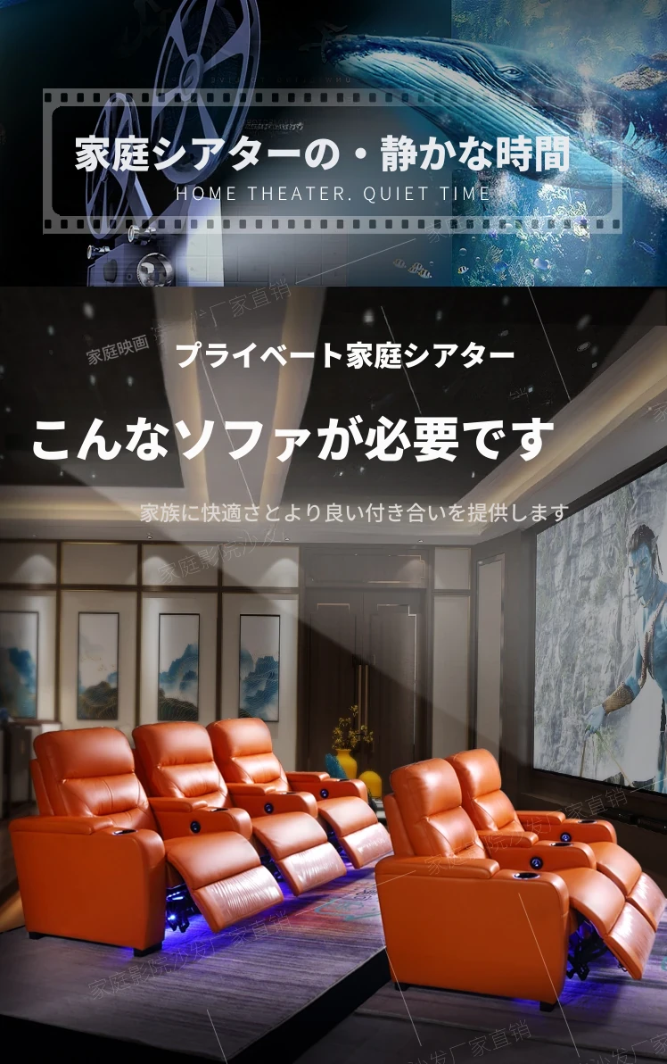 新作!プライベートヴィラ用ファミリーマルチ機能・本革シアターシートセット - 電動ソファで贅沢な映画体験を!快適さとスタイルを兼ね備えた究極のリビング空間をお楽しみください。