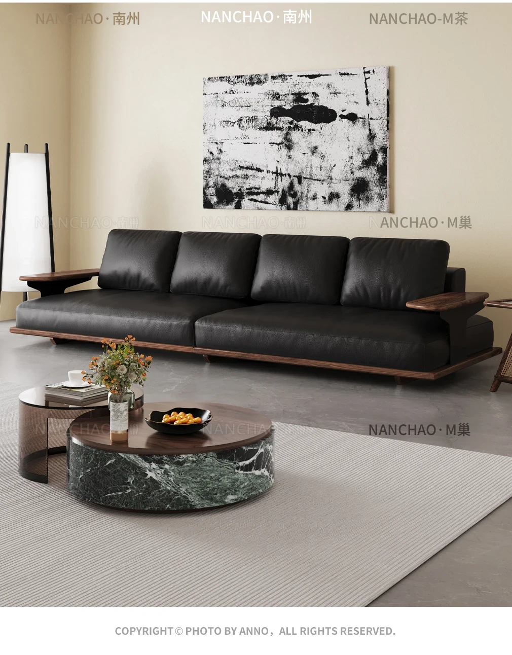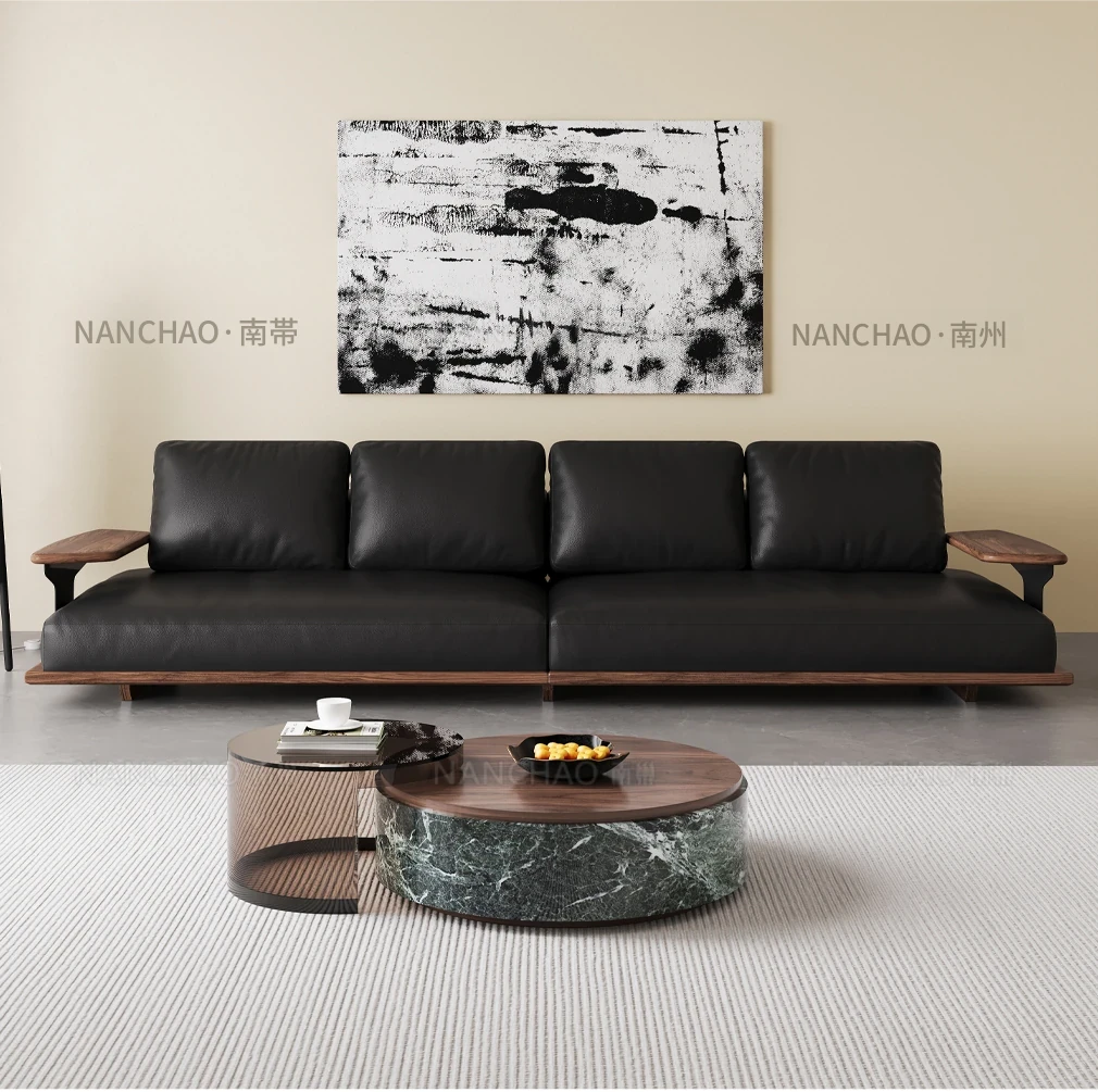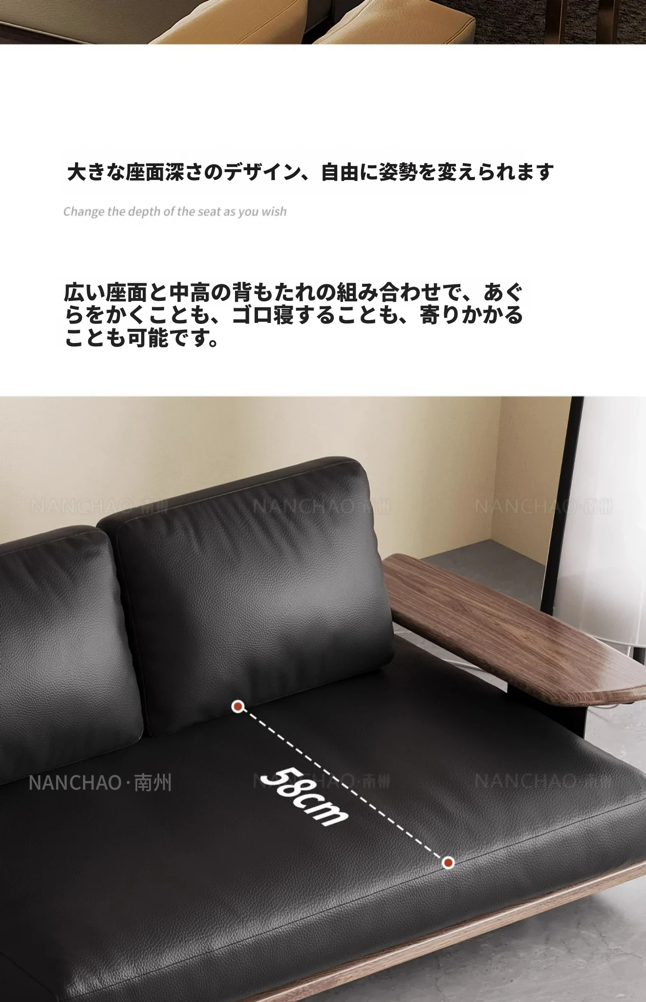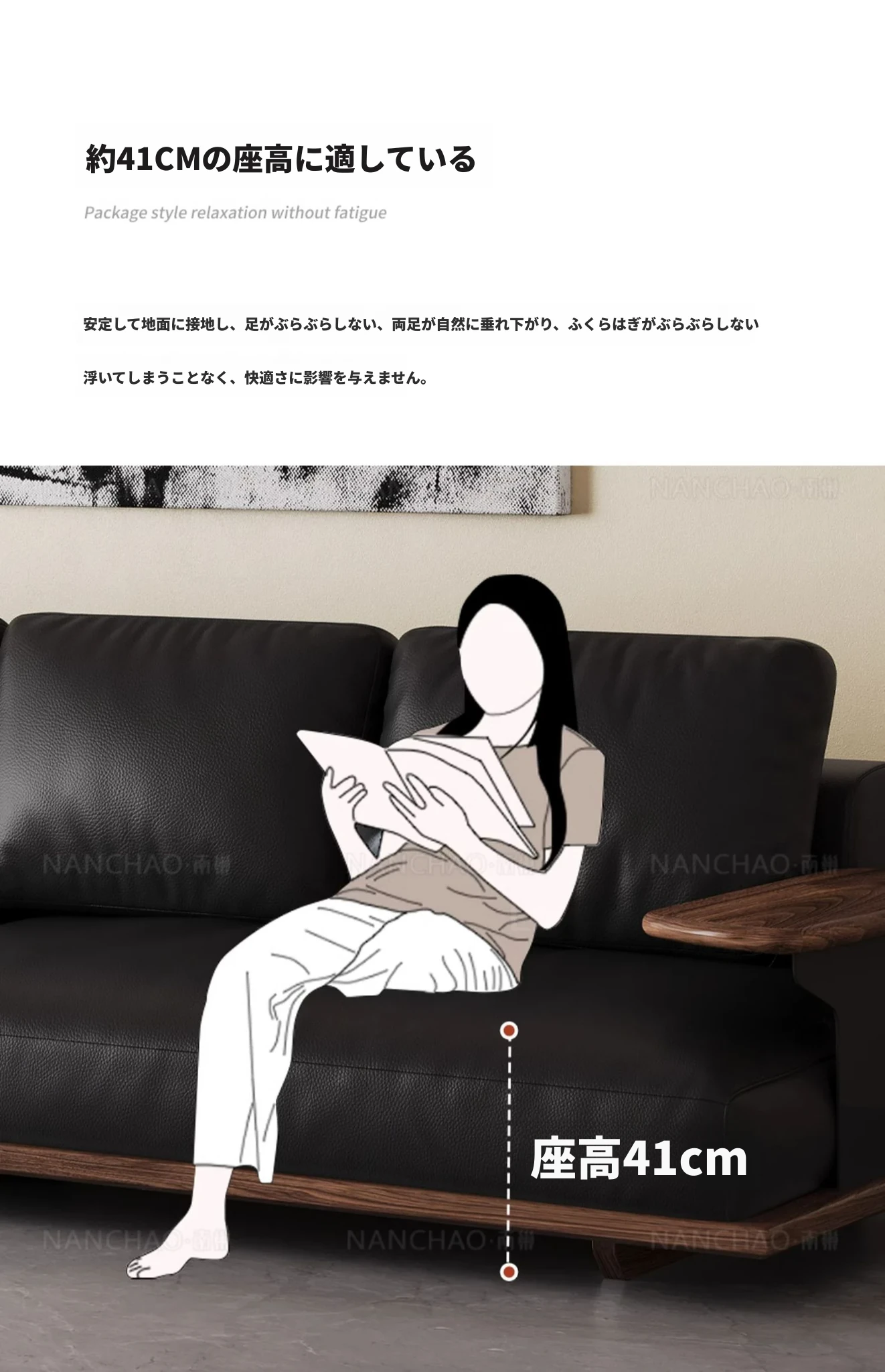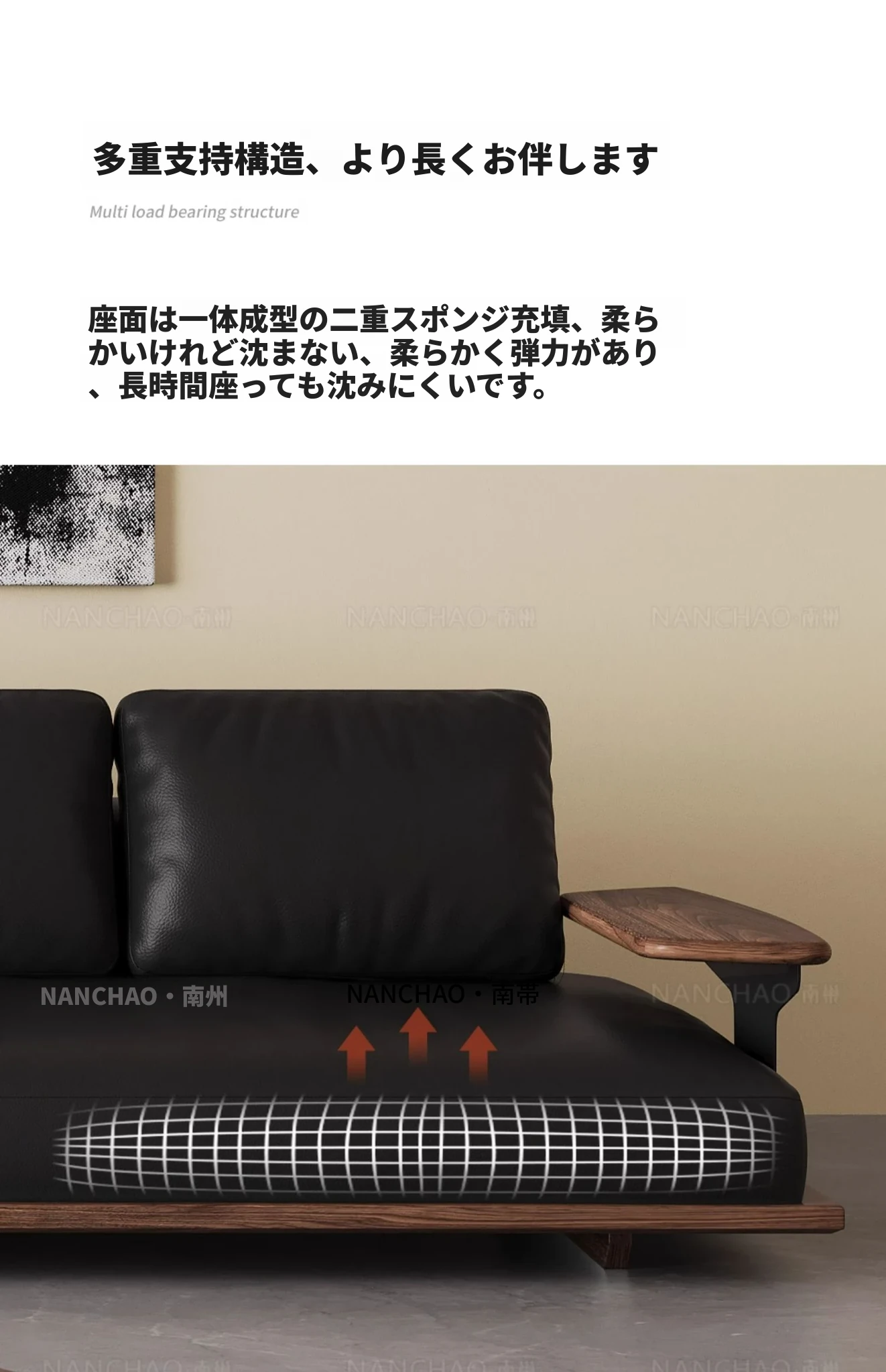 本革使用・ブラックウォールナット無垢材ソファ|上質な牛革・シンプルモダンデザイン|リビングにぴったりの2025年新作直排モデル!