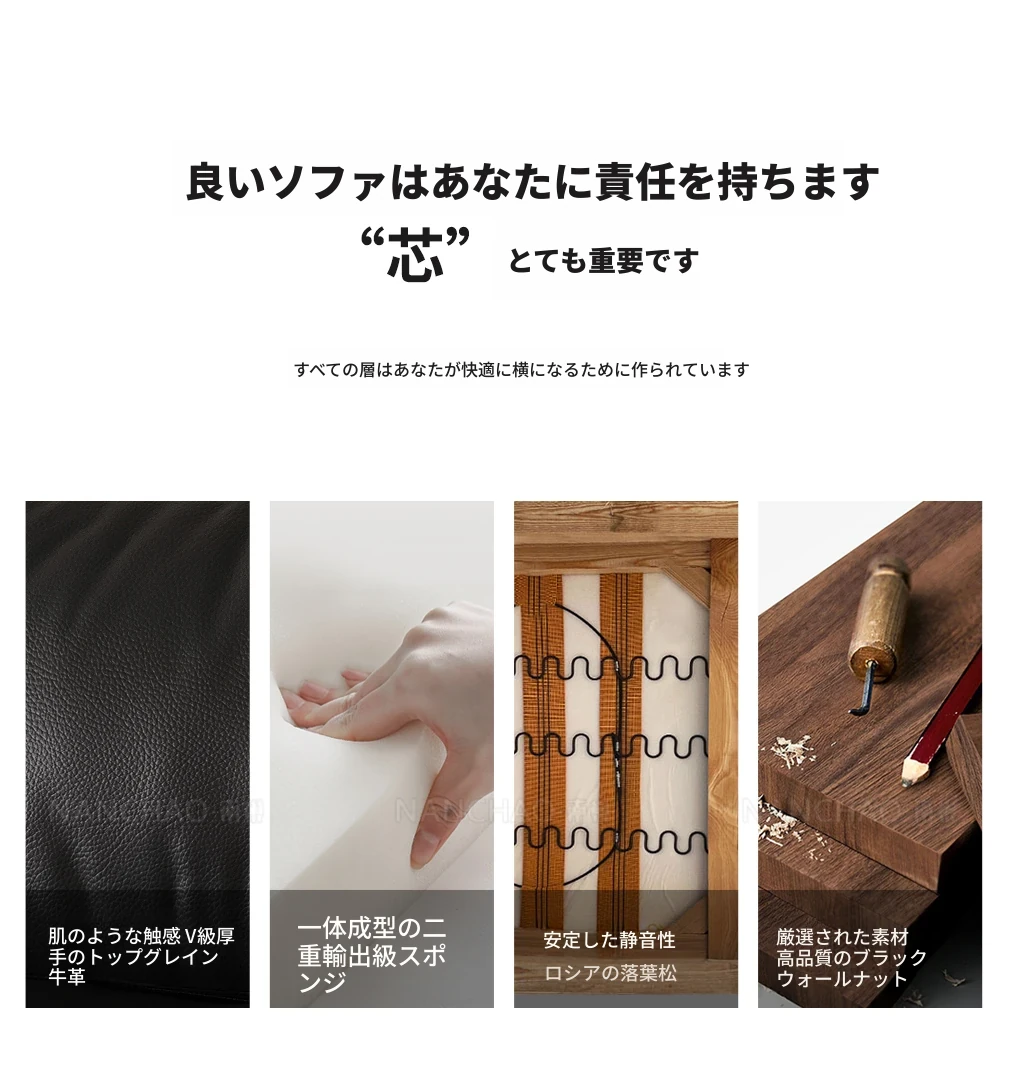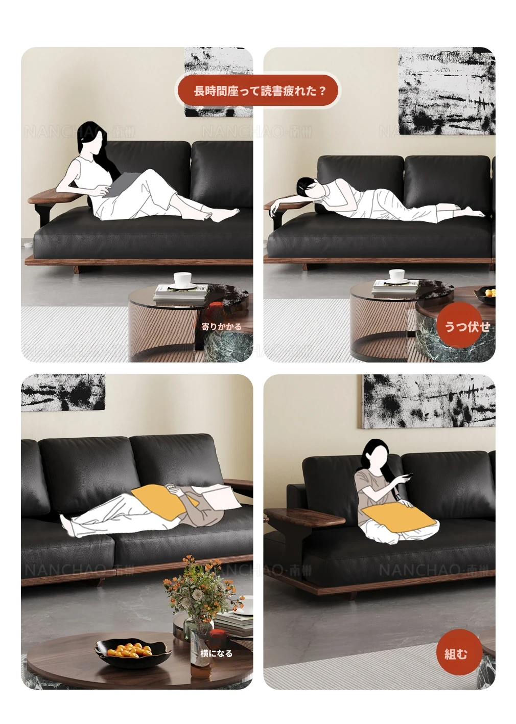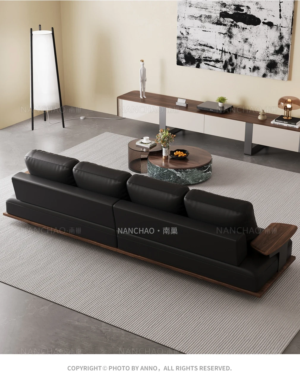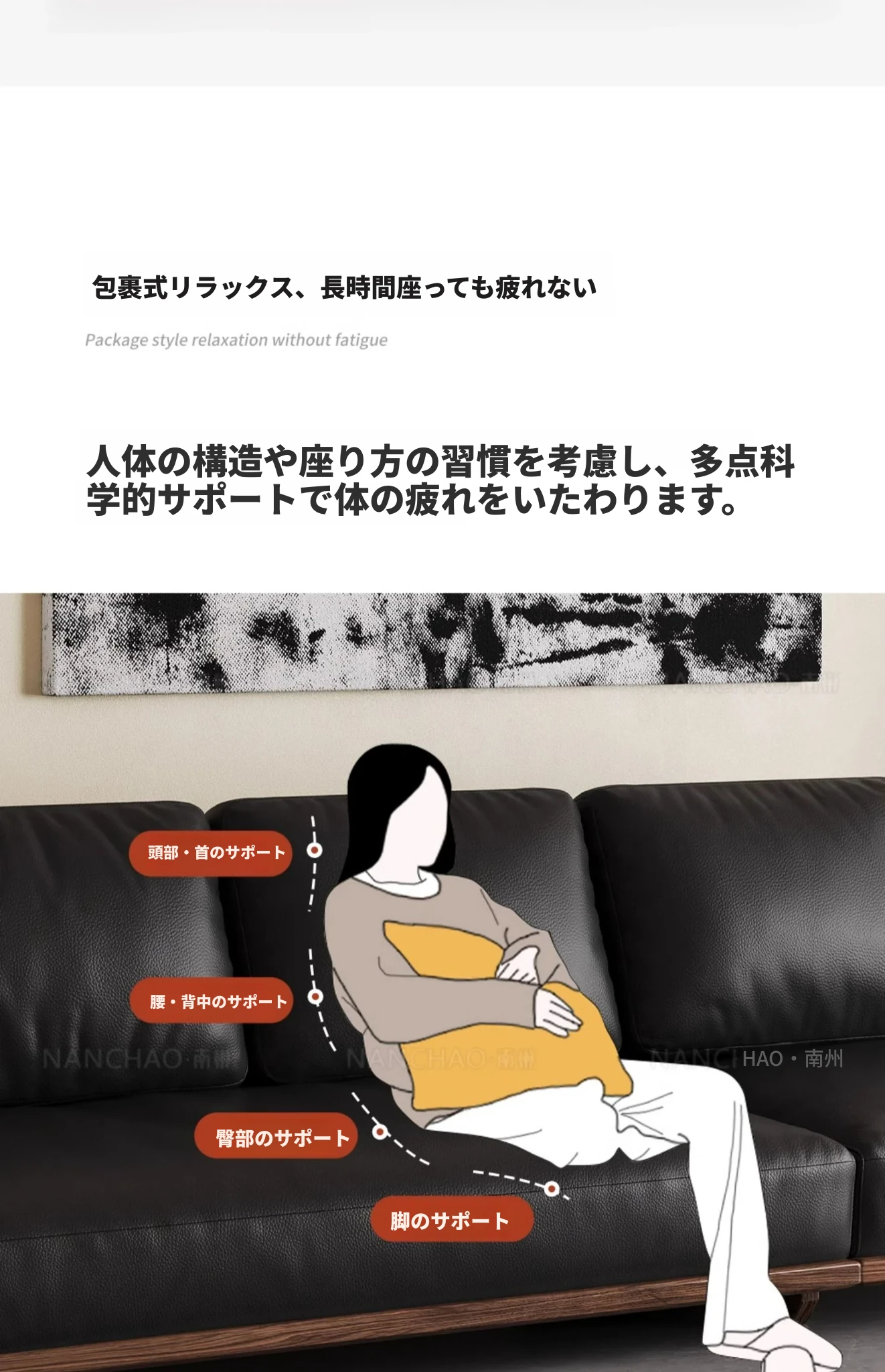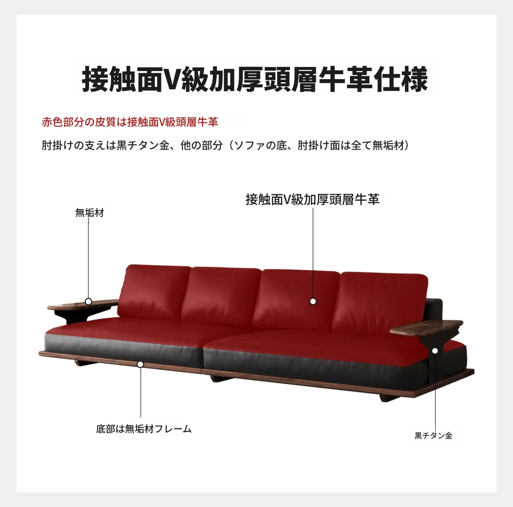 本革使用・ブラックウォールナット無垢材ソファ|上質な牛革・シンプルモダンデザイン|リビングにぴったりの2025年新作直排モデル!