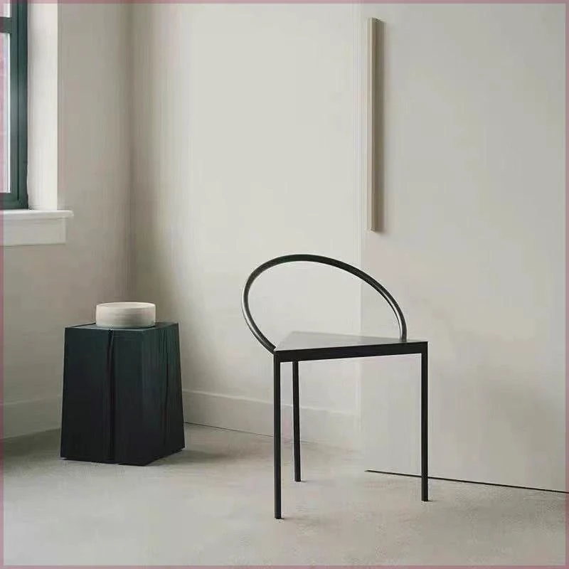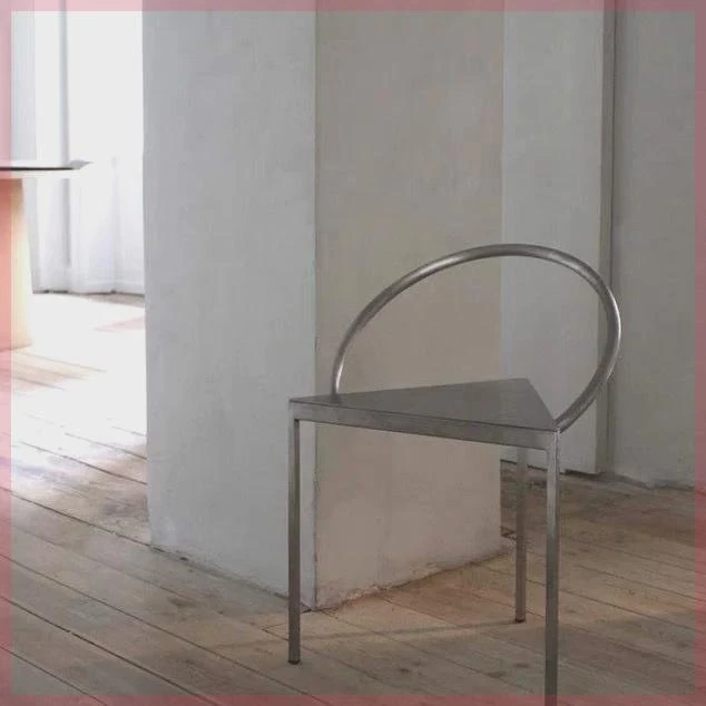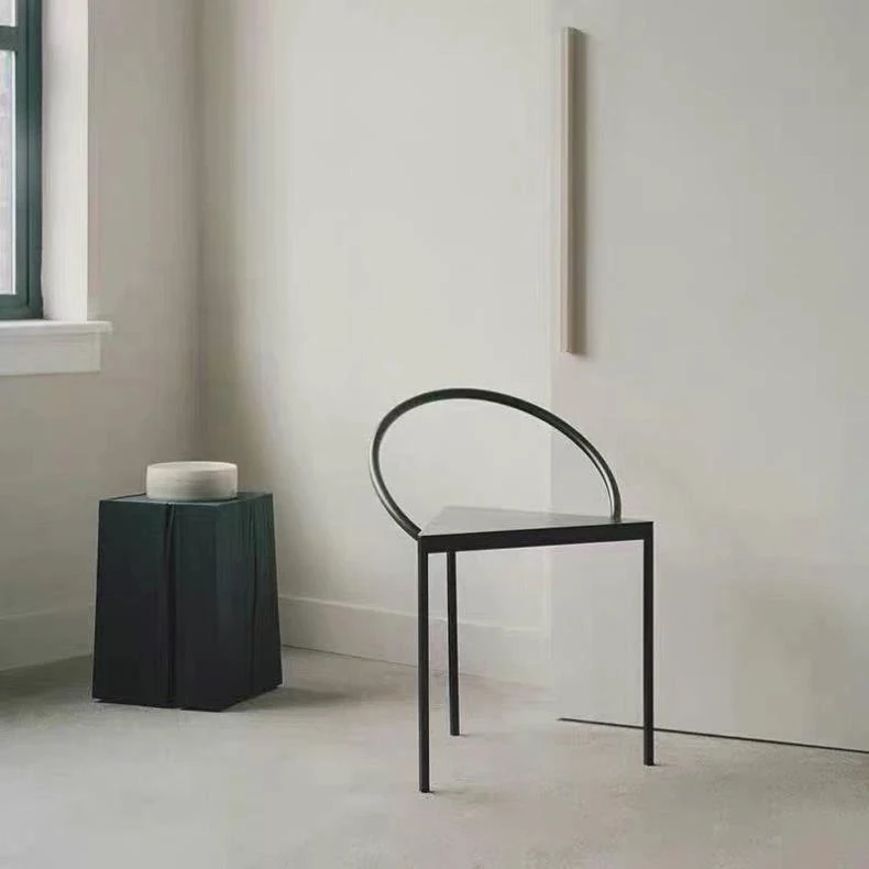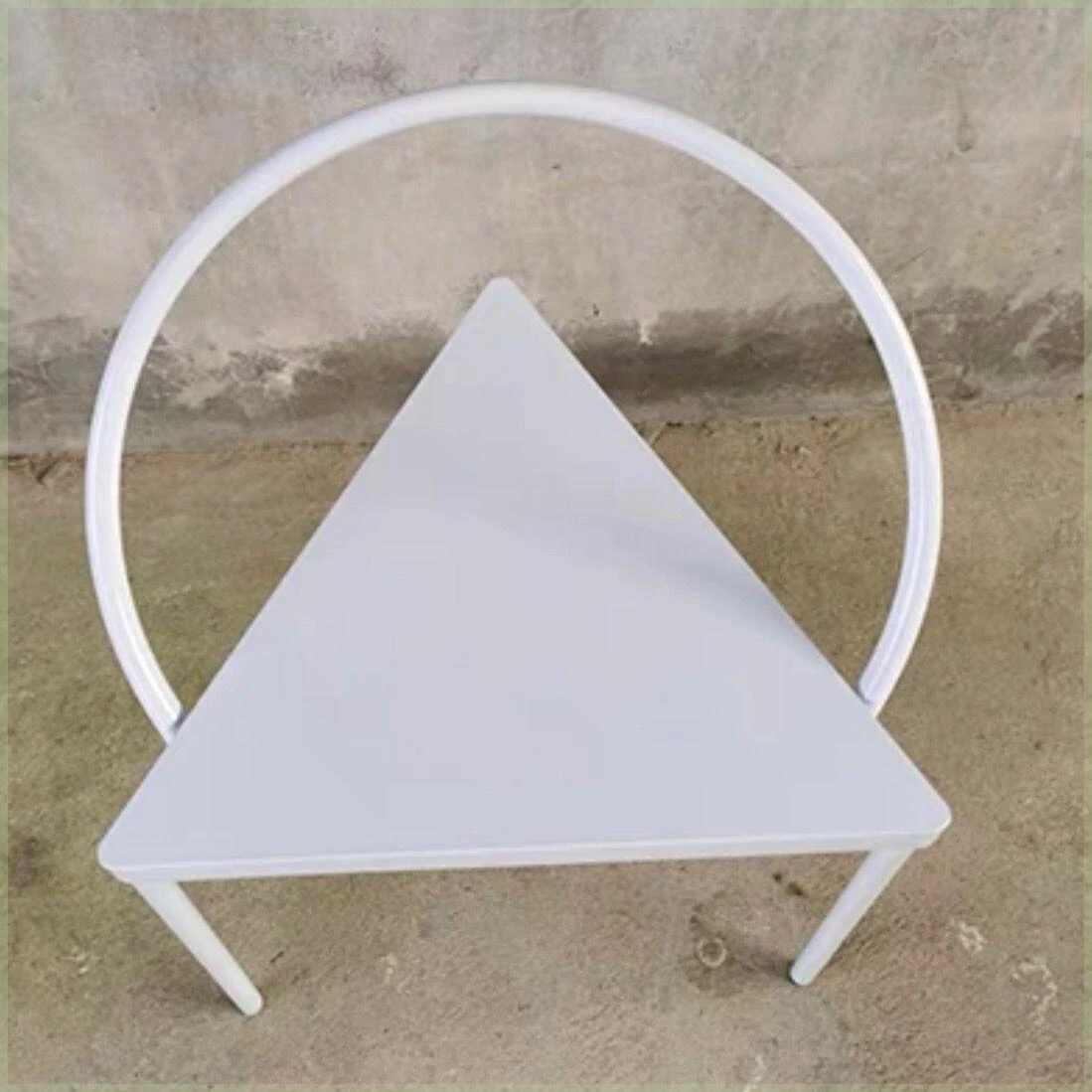 モダンシンプルなインスタ映え椅子!個性的な三角形メタルリングのスツール。室内アートのダイニングチェアとして、民宿やおしゃれな空間にぴったりなクリエイティブなチェアです。