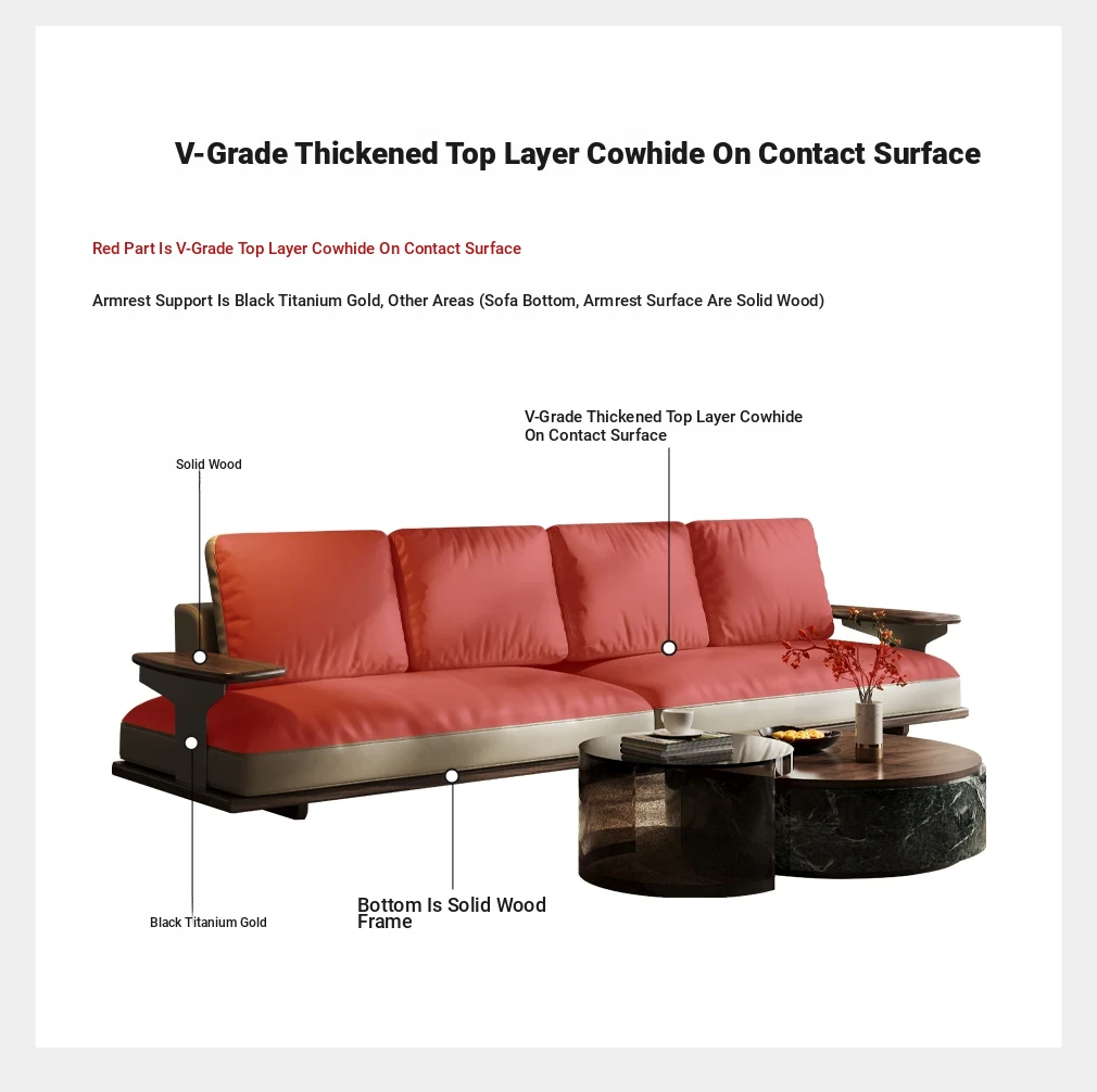 [Flagship Edition -112.20in Four Persons] V-Class thickened Head Cowhide + Black Walnut + Super Soft Violet + High Resilience Honeycomb Breathable Integrated Sponge