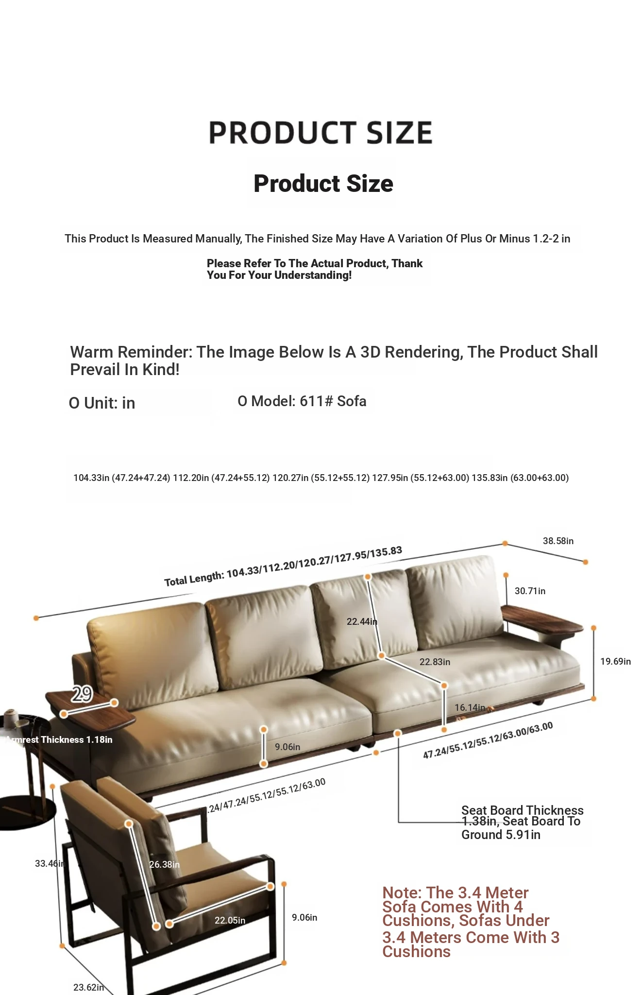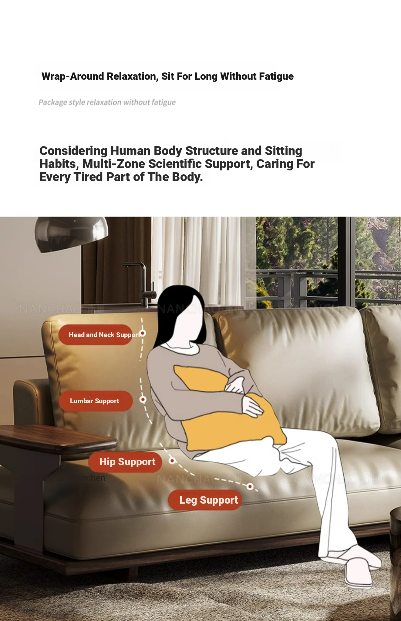 [Standard Edition -127.95in Five-Person] High Quality Ecological Leather + Black Walnut + High Resilience Honeycomb Breathable Integrated Sponge
