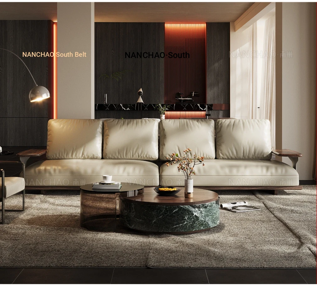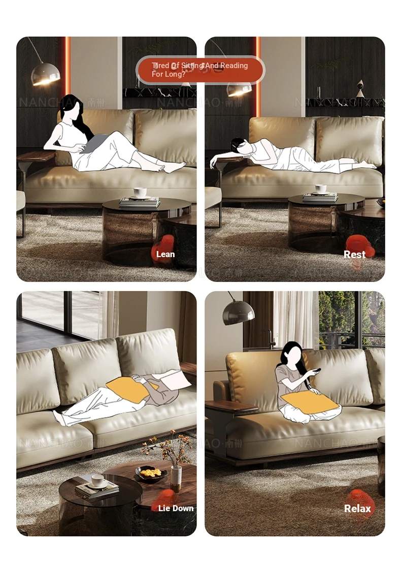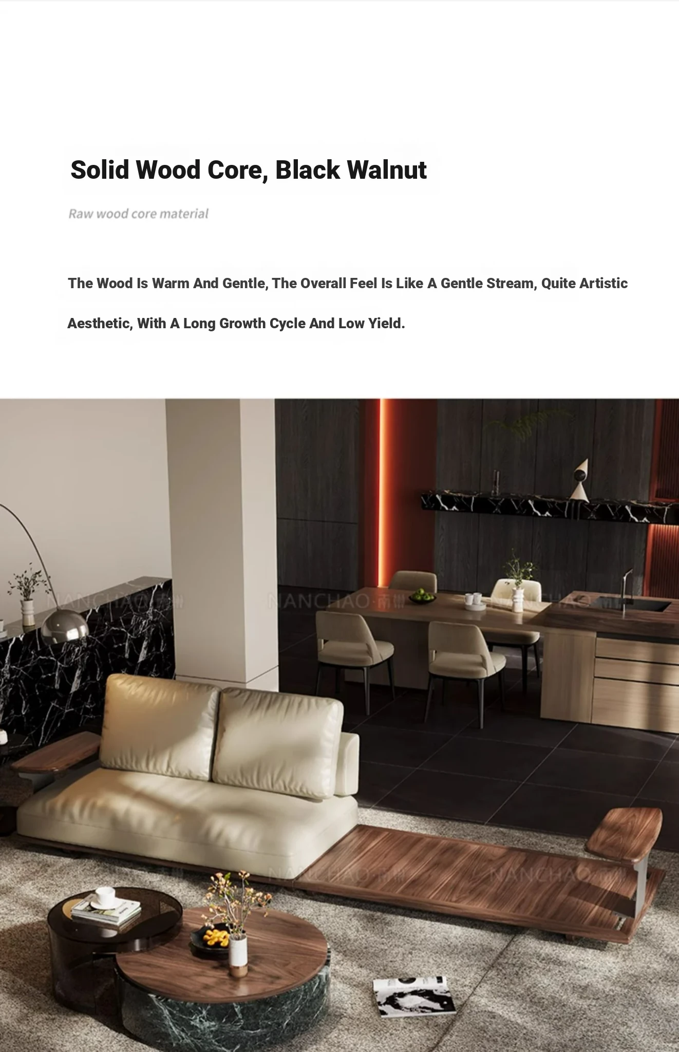 [Standard Edition -112.20in Four Person] High Quality Ecological Leather + Black Walnut + High Resilience Honeycomb Breathable Integrated Sponge
