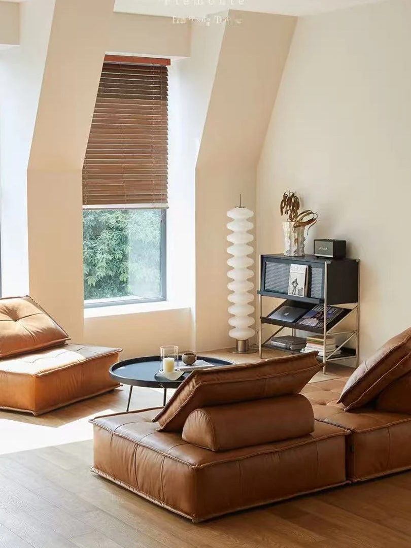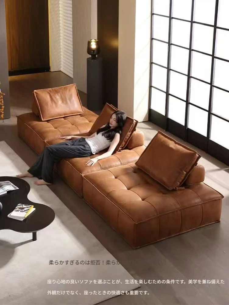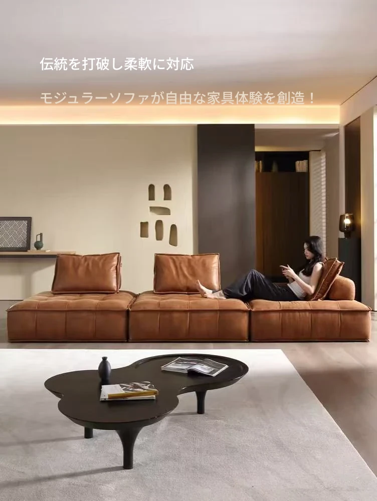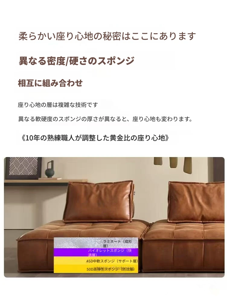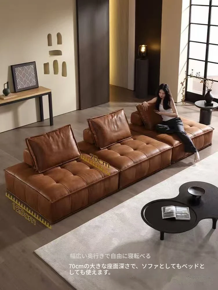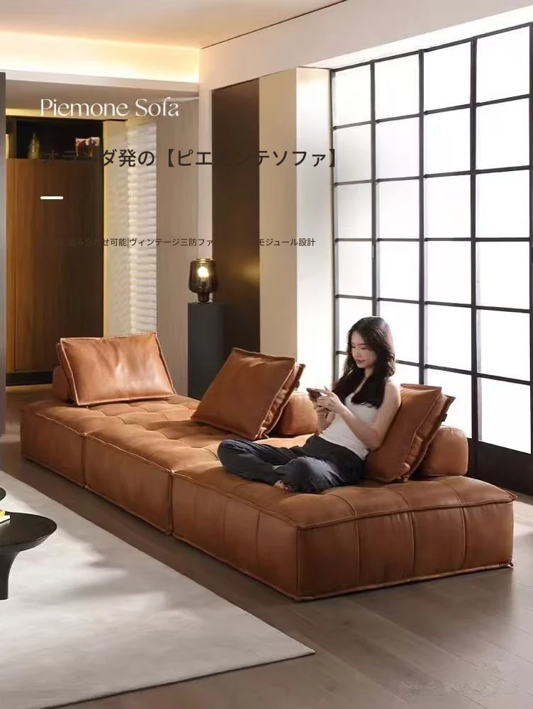 豆腐ブロック本革ソファ|小型住宅に最適なモジュラー1人用角型ソファ|リビングにぴったりのミニマリストピエモンテスタイルソファ