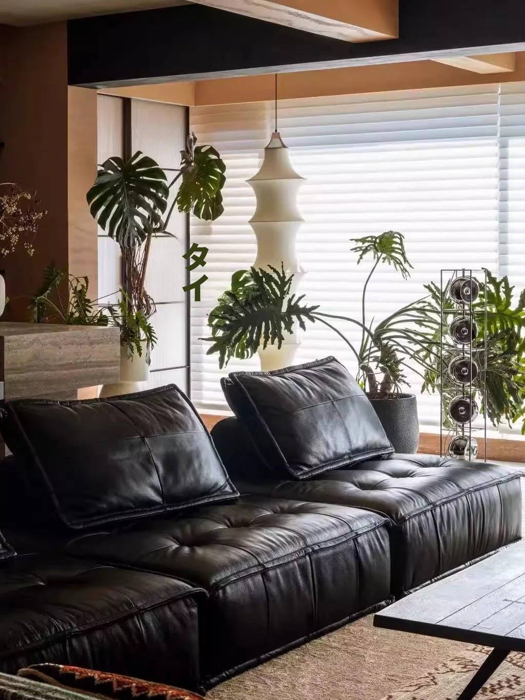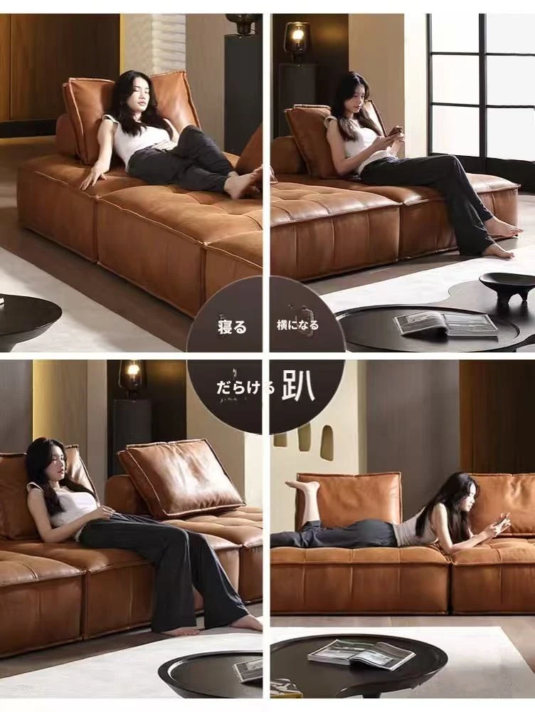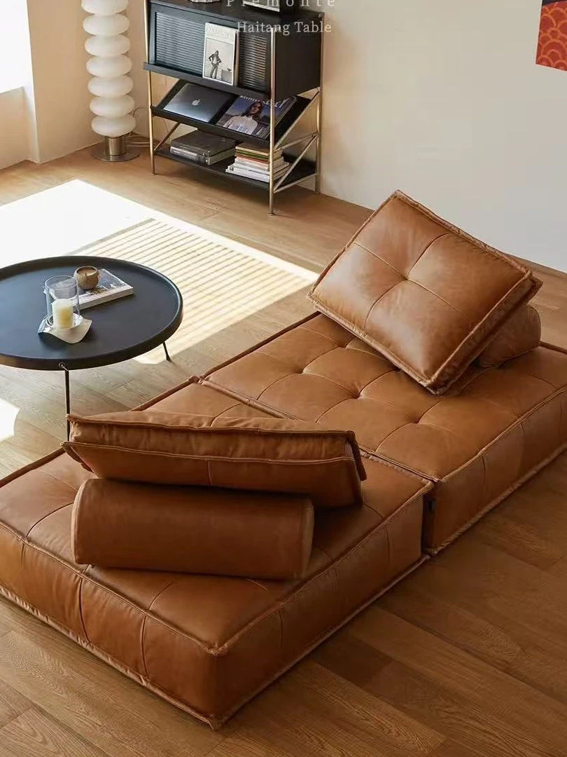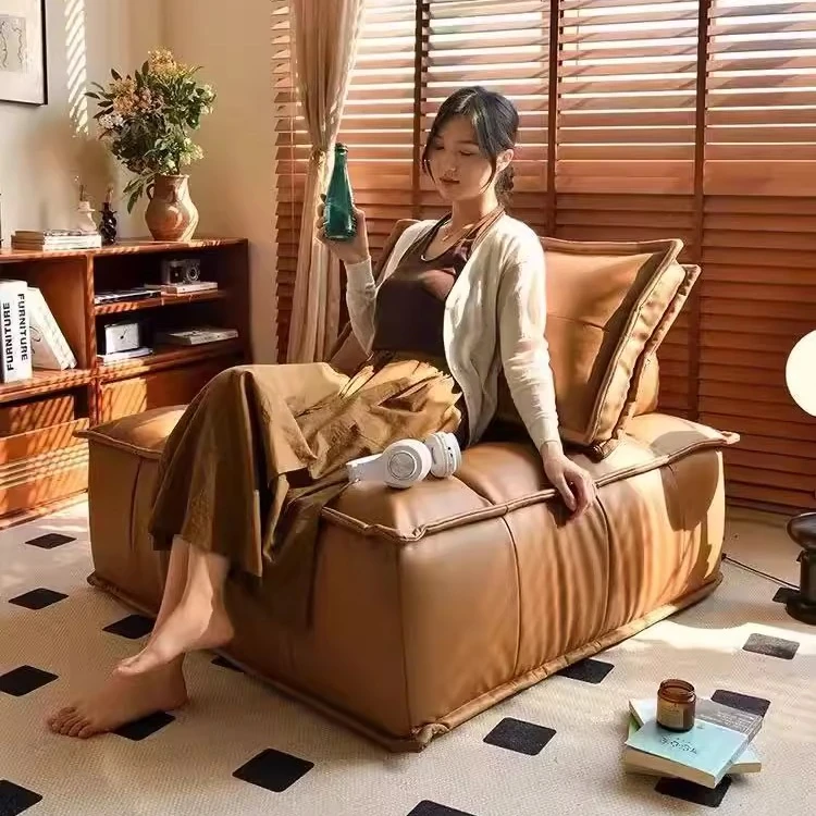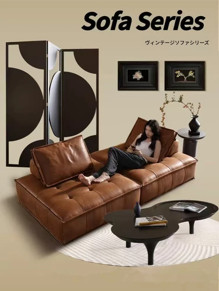 豆腐ブロック本革ソファ|小型住宅に最適なモジュラー1人用角型ソファ|リビングにぴったりのミニマリストピエモンテスタイルソファ
