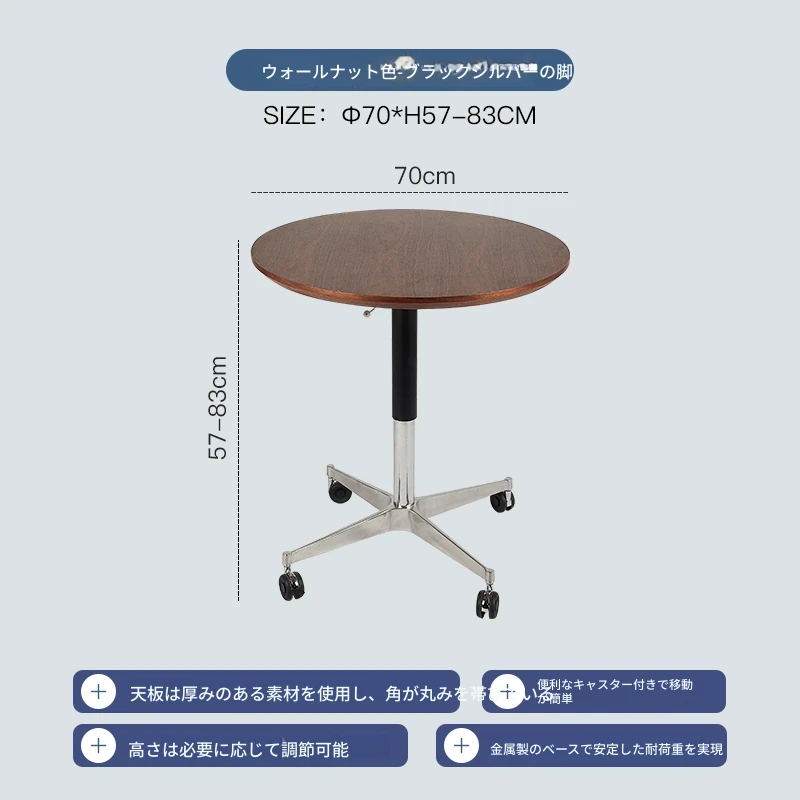 ウォールナットカラー-ブラックシルバー脚 φ70*H57-83cm