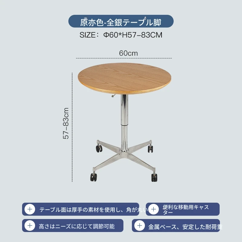 ナチュラルウッドカラー-オールシルバー脚 φ60*H57-83cm