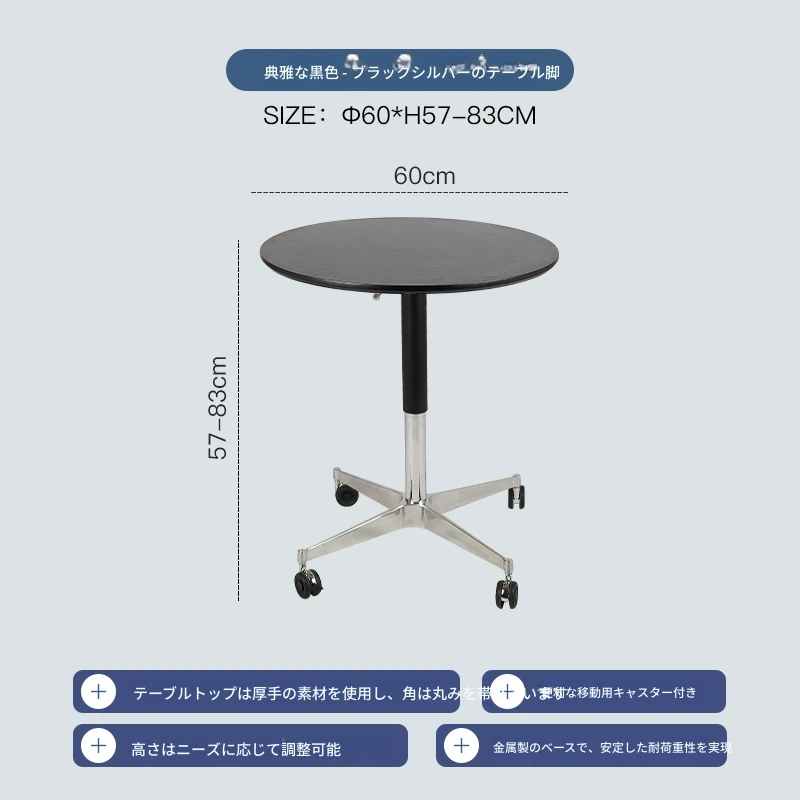クラシックブラック-ブラックシルバー脚 φ60*H57-83cm