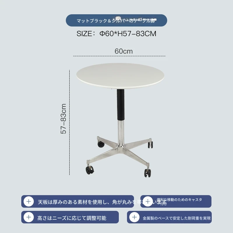 マットホワイト-ブラックシルバー脚 φ60*H57-83cm