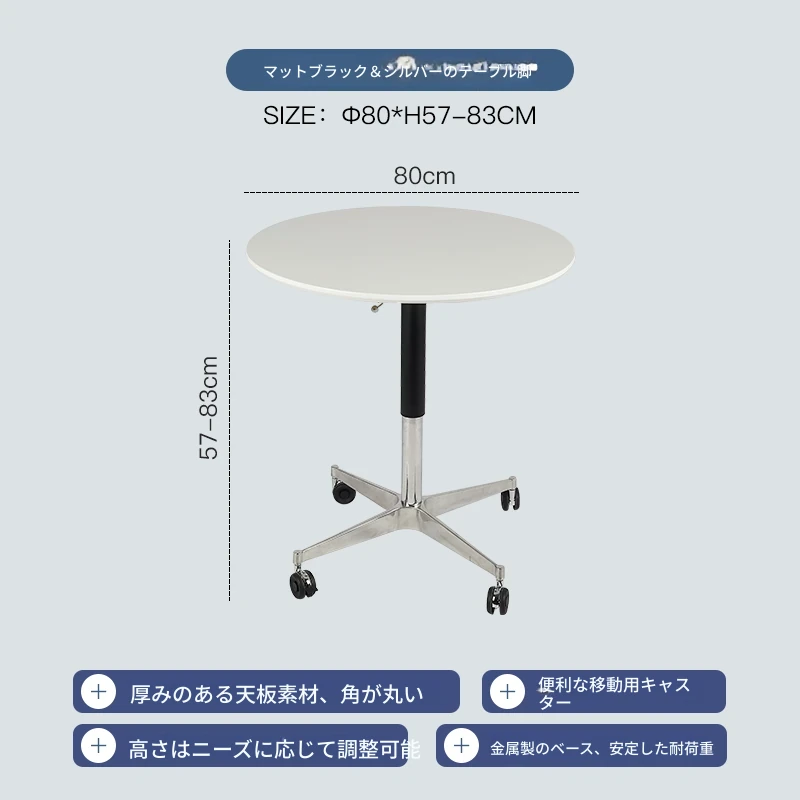 マットホワイト-ブラックシルバー脚 φ80*H57-83cm