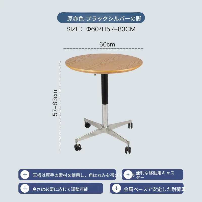 ナチュラルウッドカラー-ブラックシルバー脚 φ60*H57-83cm