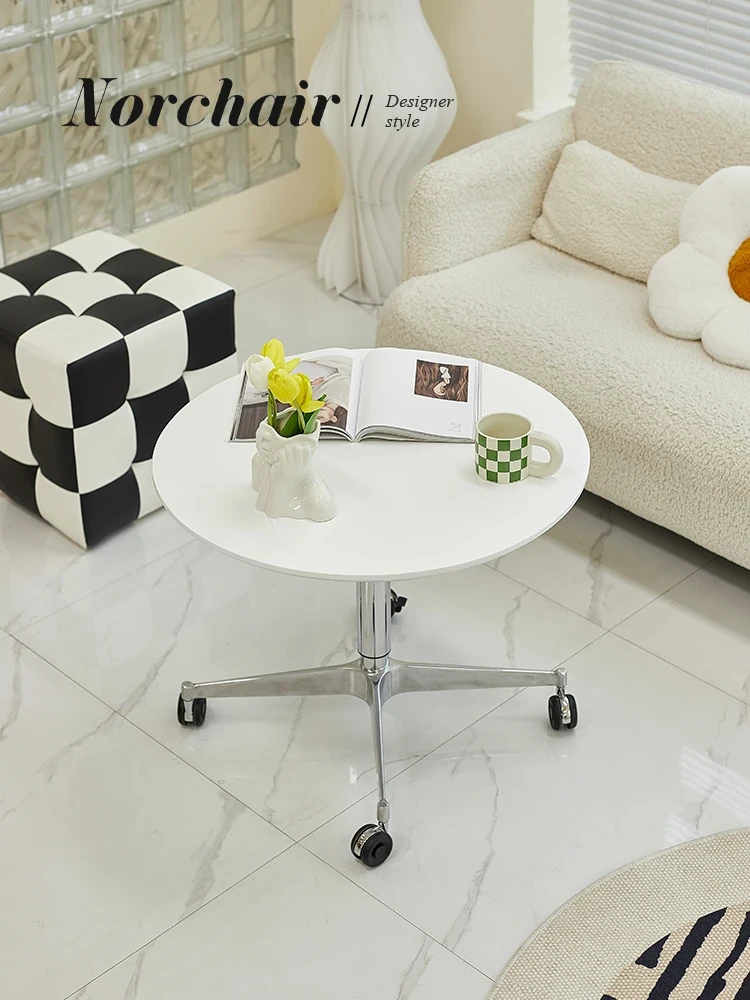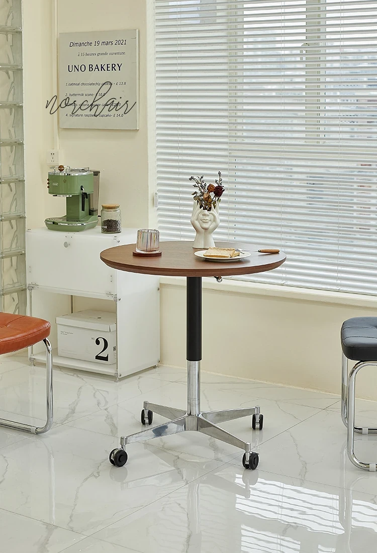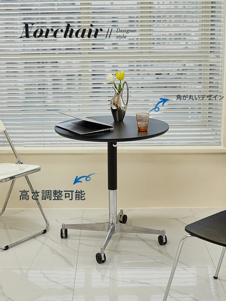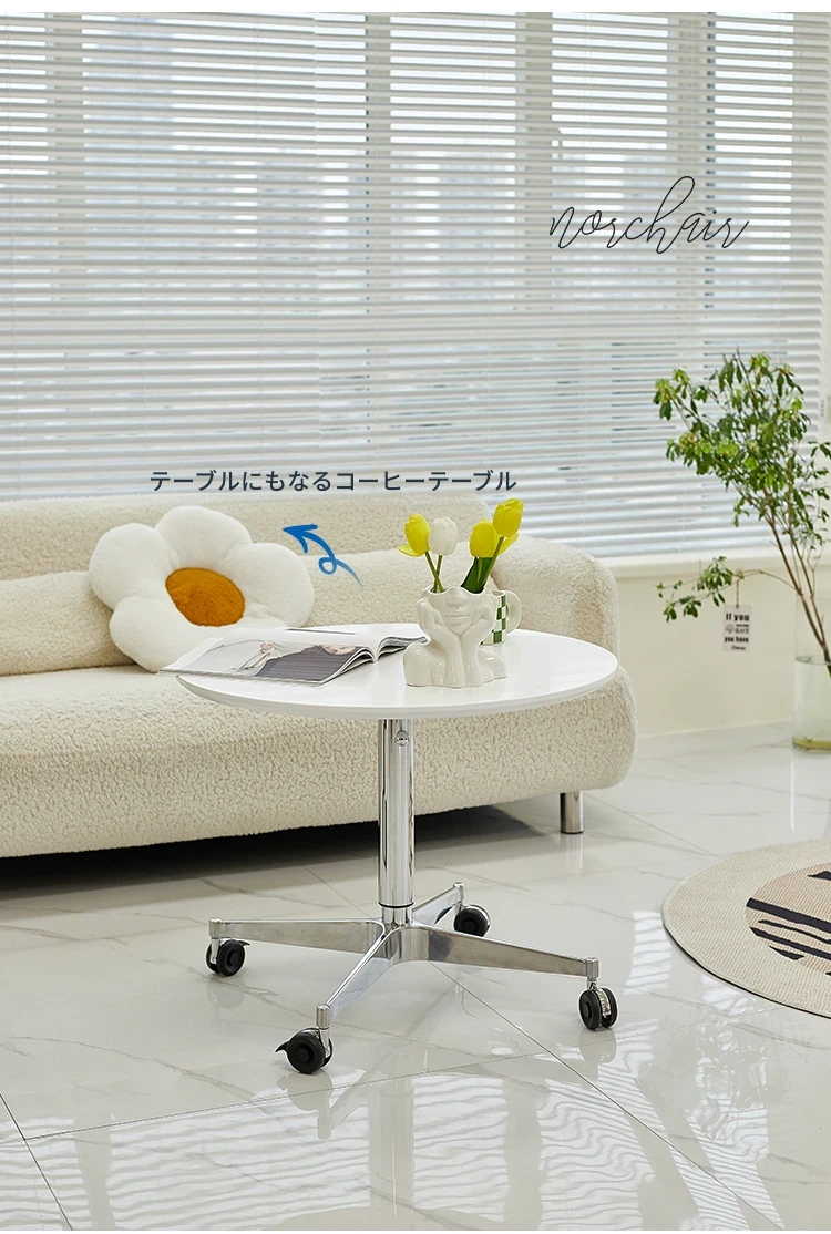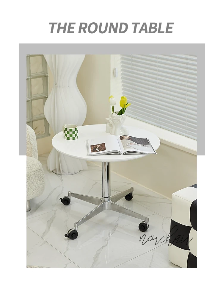 NORCHAIRのシンプルな和風昇降ダイニングテーブル - 現代の小型住宅に最適なクリエイティブで移動可能な円形テーブル。おしゃれで機能的、家族や友人との楽しいひとときを演出します!