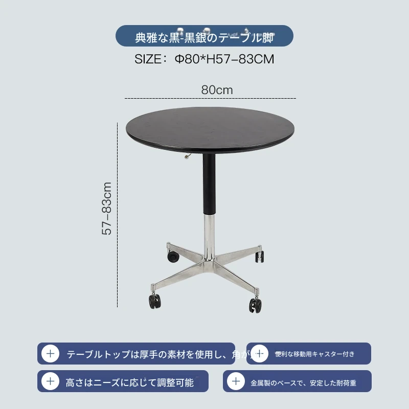 クラシックブラック-ブラックシルバー脚 φ80*H57-83cm