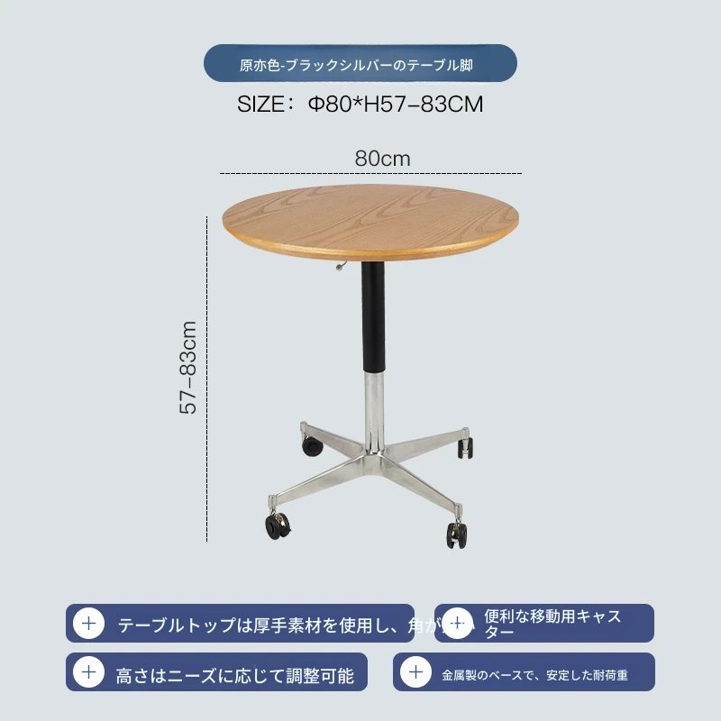 ナチュラルウッドカラー-ブラックシルバー脚 φ80*H57-83cm