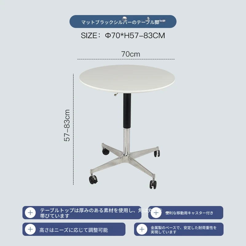 マットホワイト-ブラックシルバー脚 φ70*H57-83cm