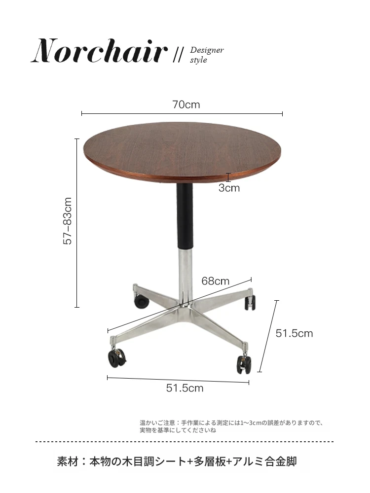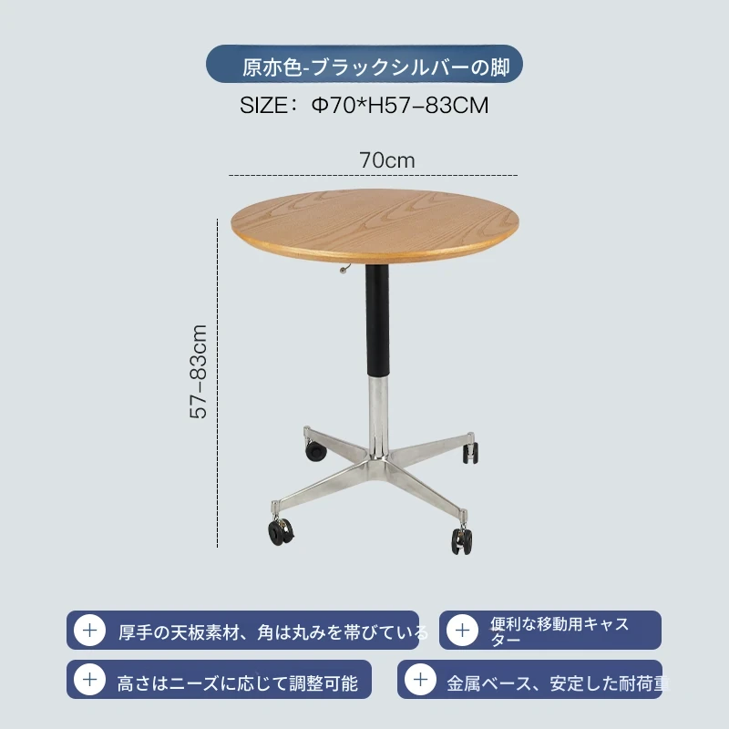 ナチュラルウッドカラー-ブラックシルバー脚 φ70*H57-83cm