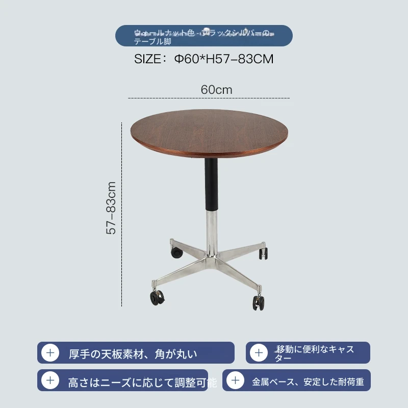 ウォールナットカラー-ブラックシルバー脚 φ60*H57-83cm