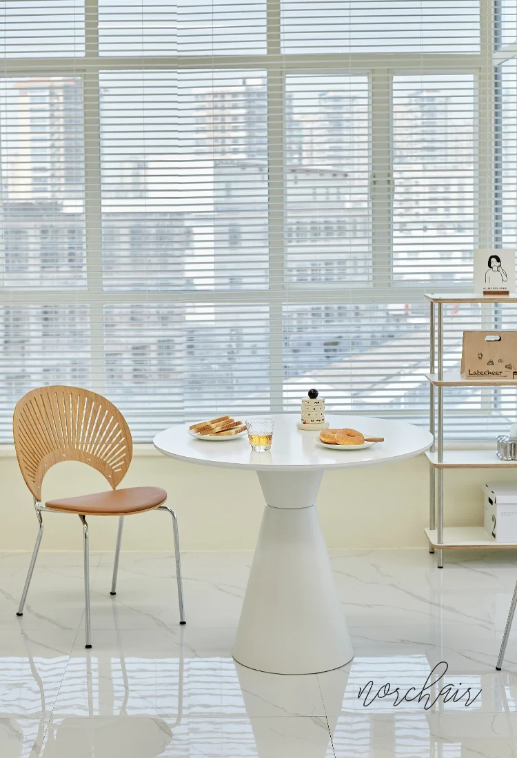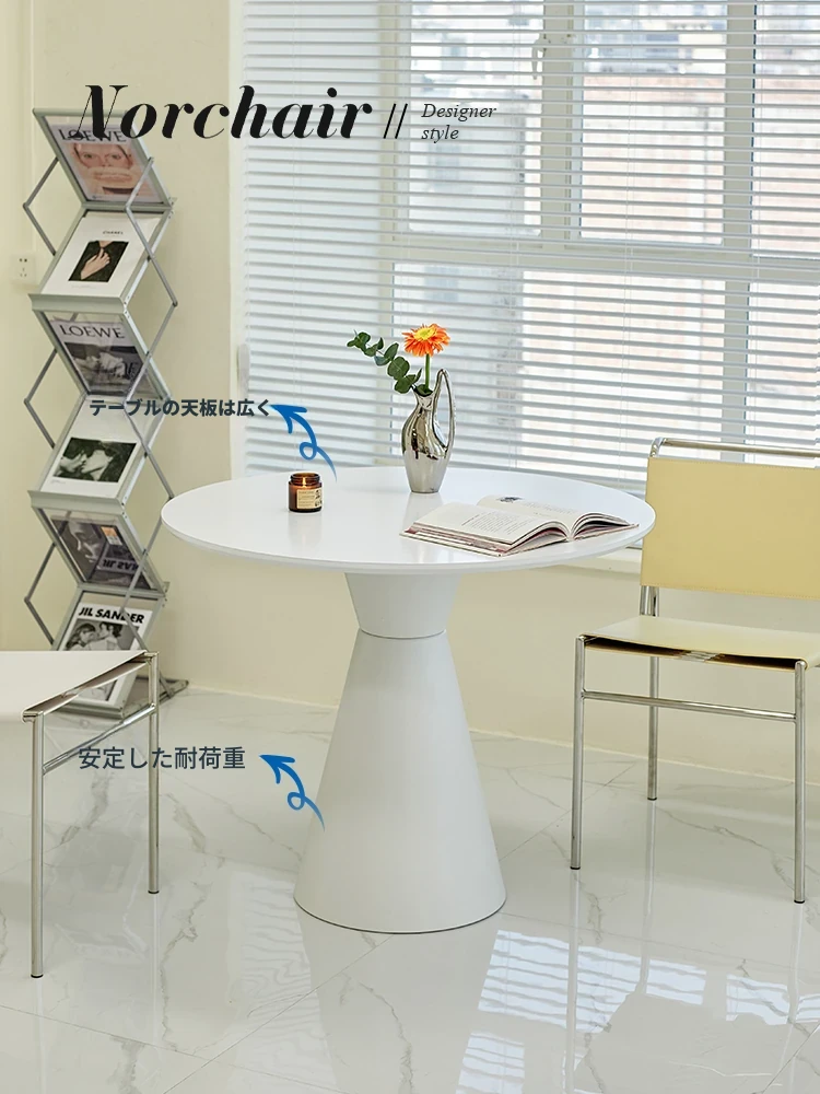 Norchair北欧スタイルのシンプルなダイニングテーブル - コンパクトな家やモダンなレストランにぴったり!丸型デザインで、カフェやティールームにも最適なトレンド感溢れるリラックス空間を演出します。