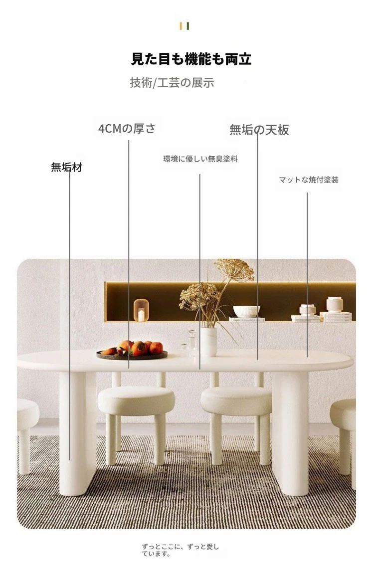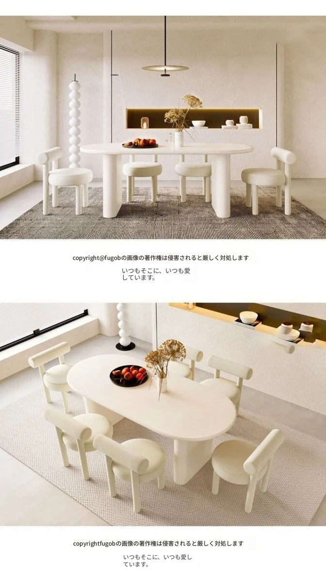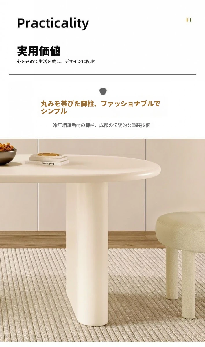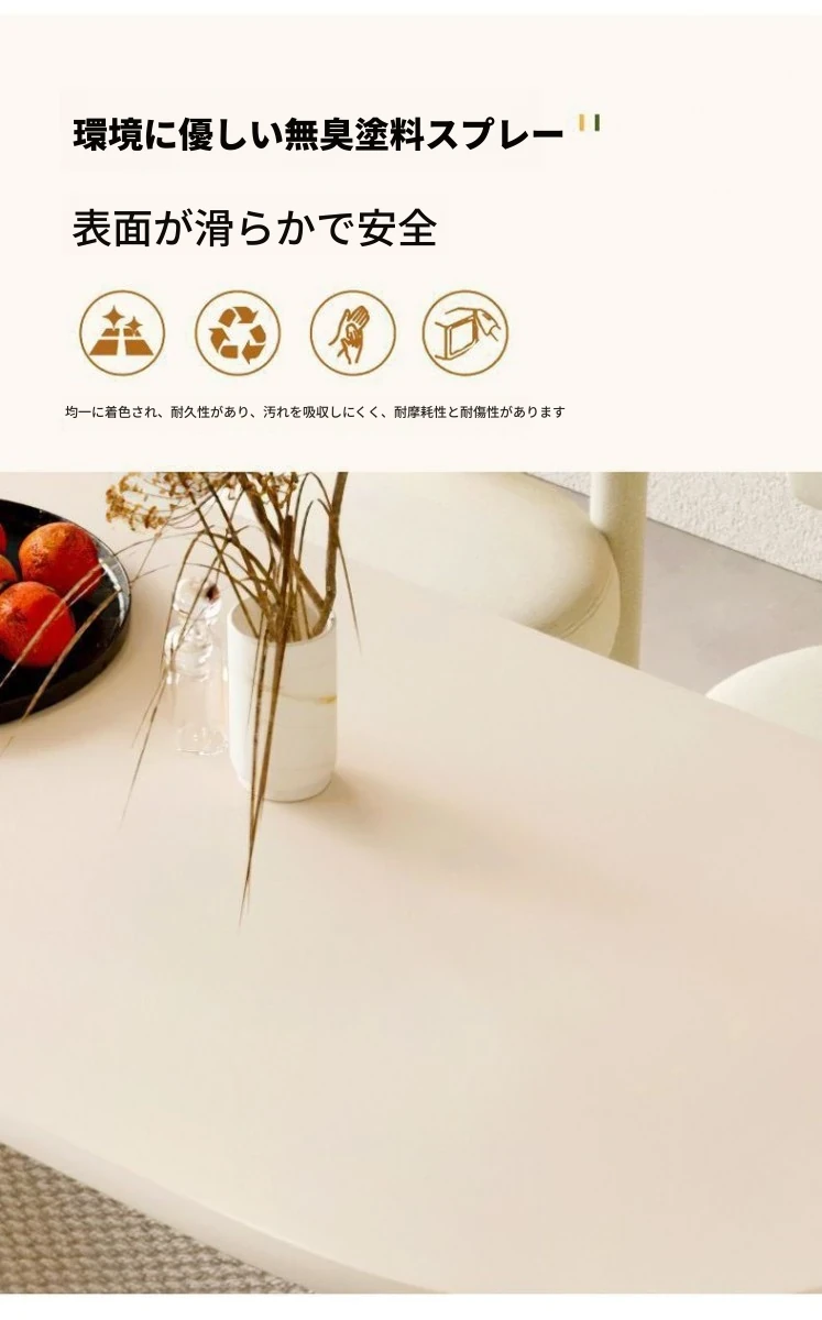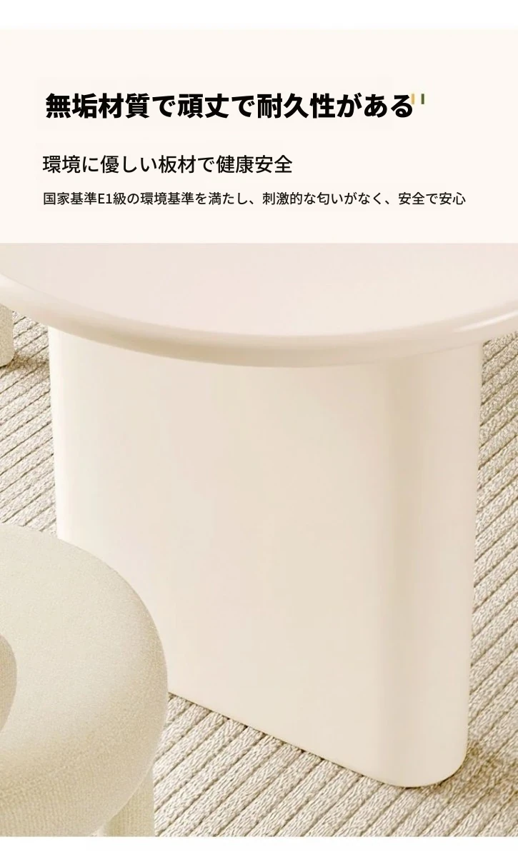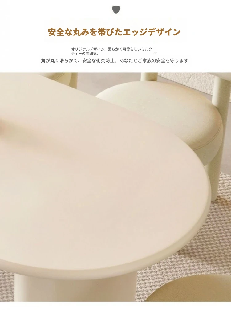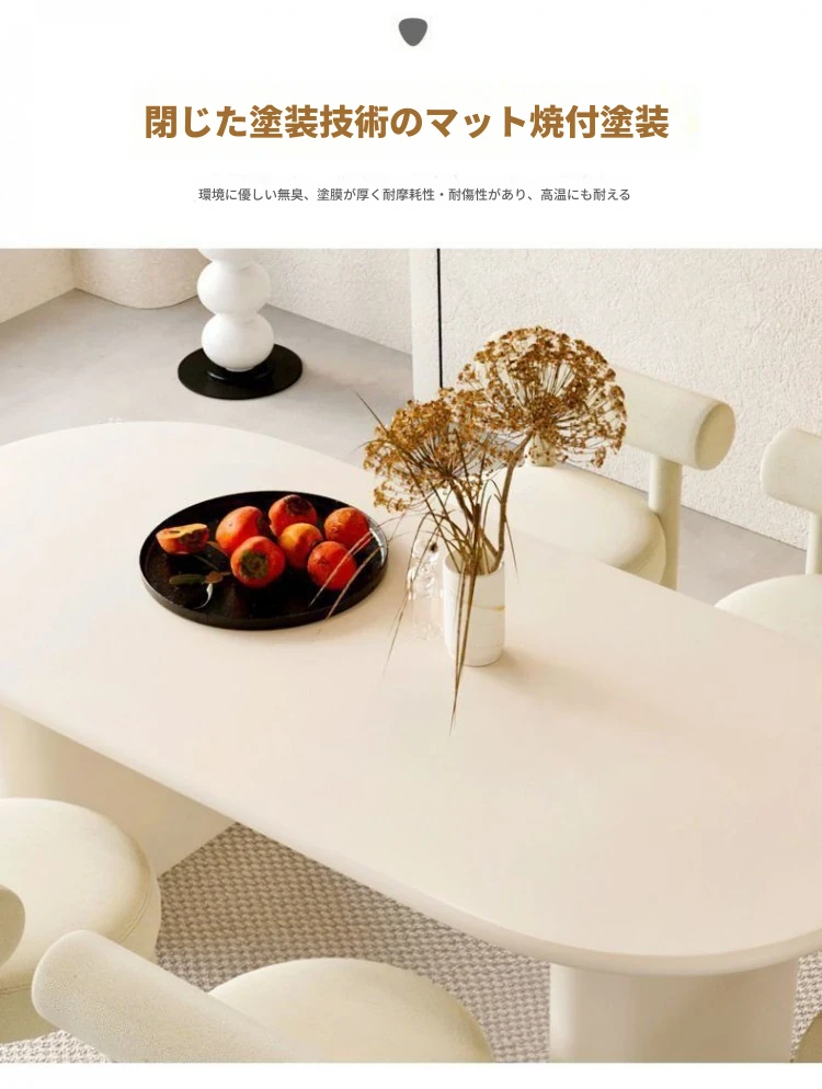 北欧風クリーム仕上げの無垢材ダイニングテーブル - 小型住宅に最適なモダンミニマリストの楕円形テーブルで、家族の団らんを演出!