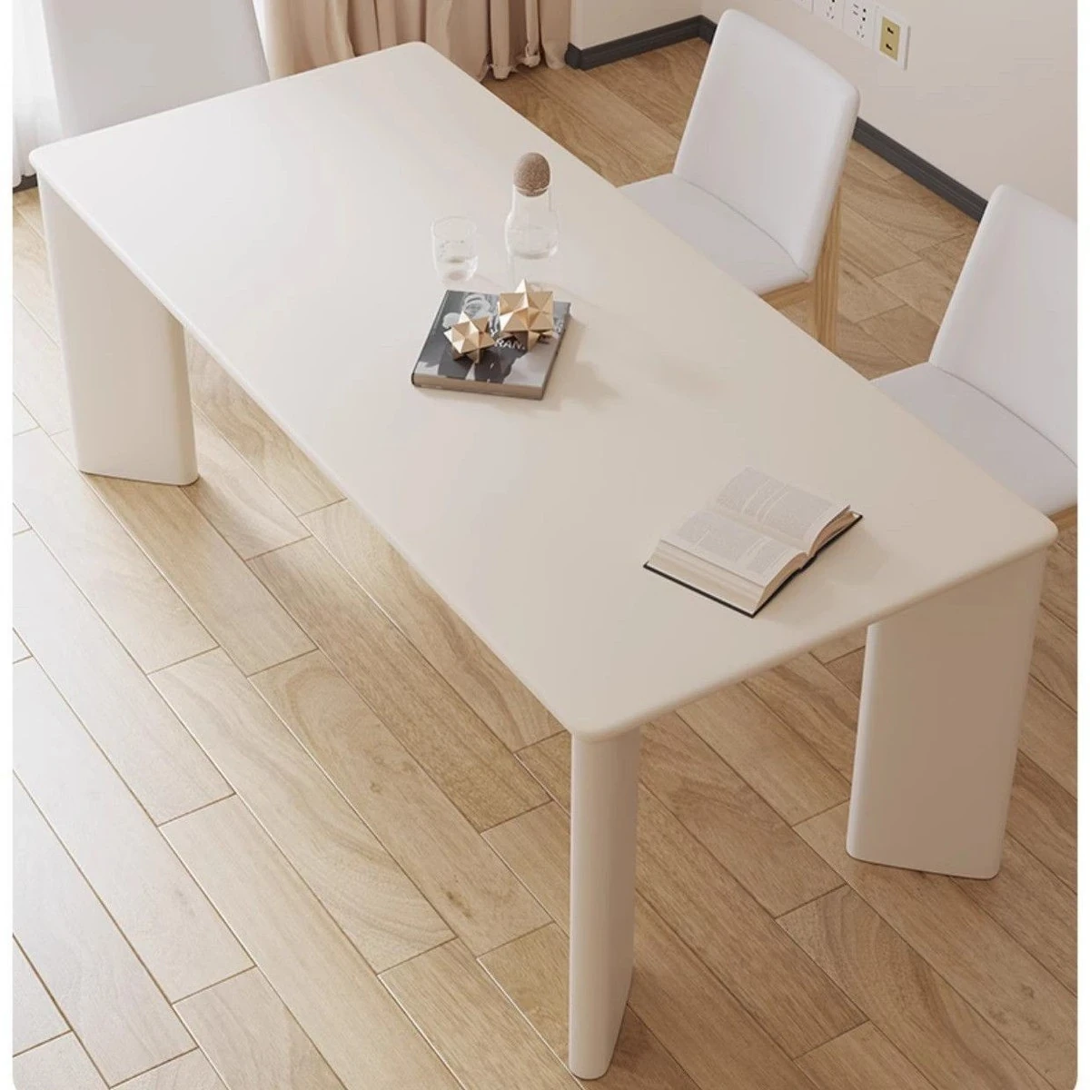 北欧スタイルのホワイトウッドダイニングテーブル&チェアセット!おしゃれなクリームカラーで、リラックスした空間を演出。デザイナーが手掛けた長テーブルは、作業台や書斎にもぴったり。あなたのインテリアを格上げするアイテムです!
