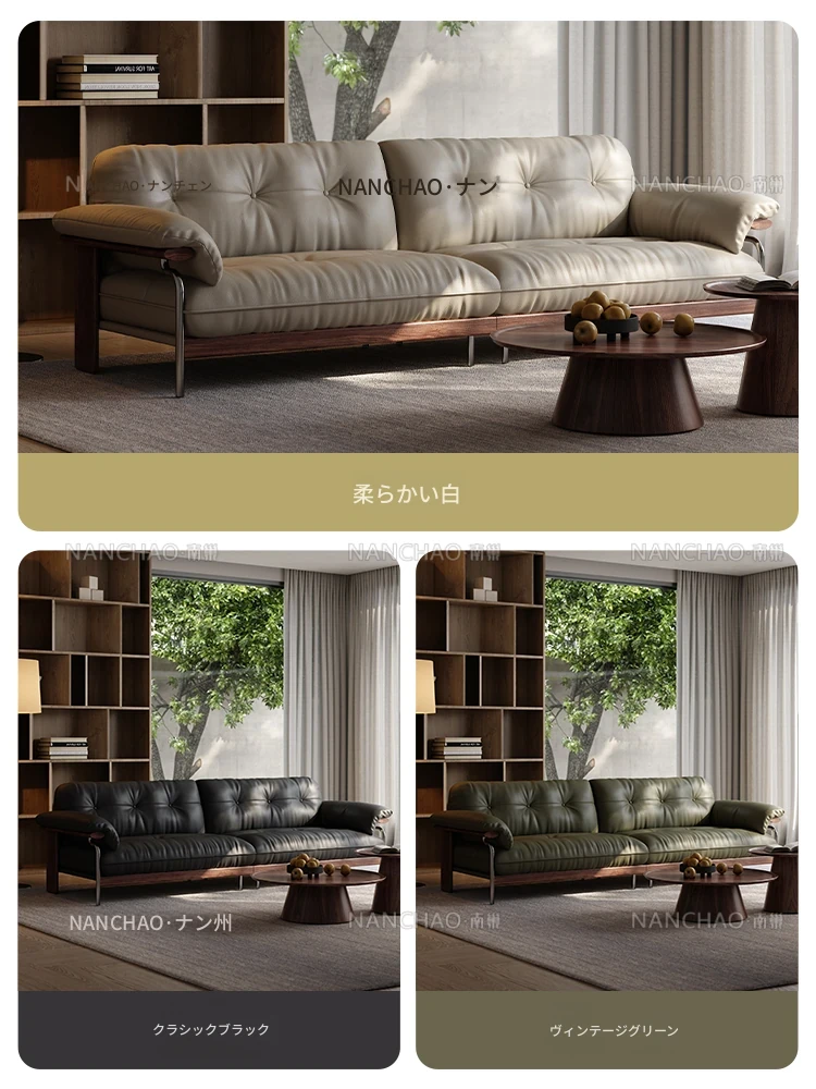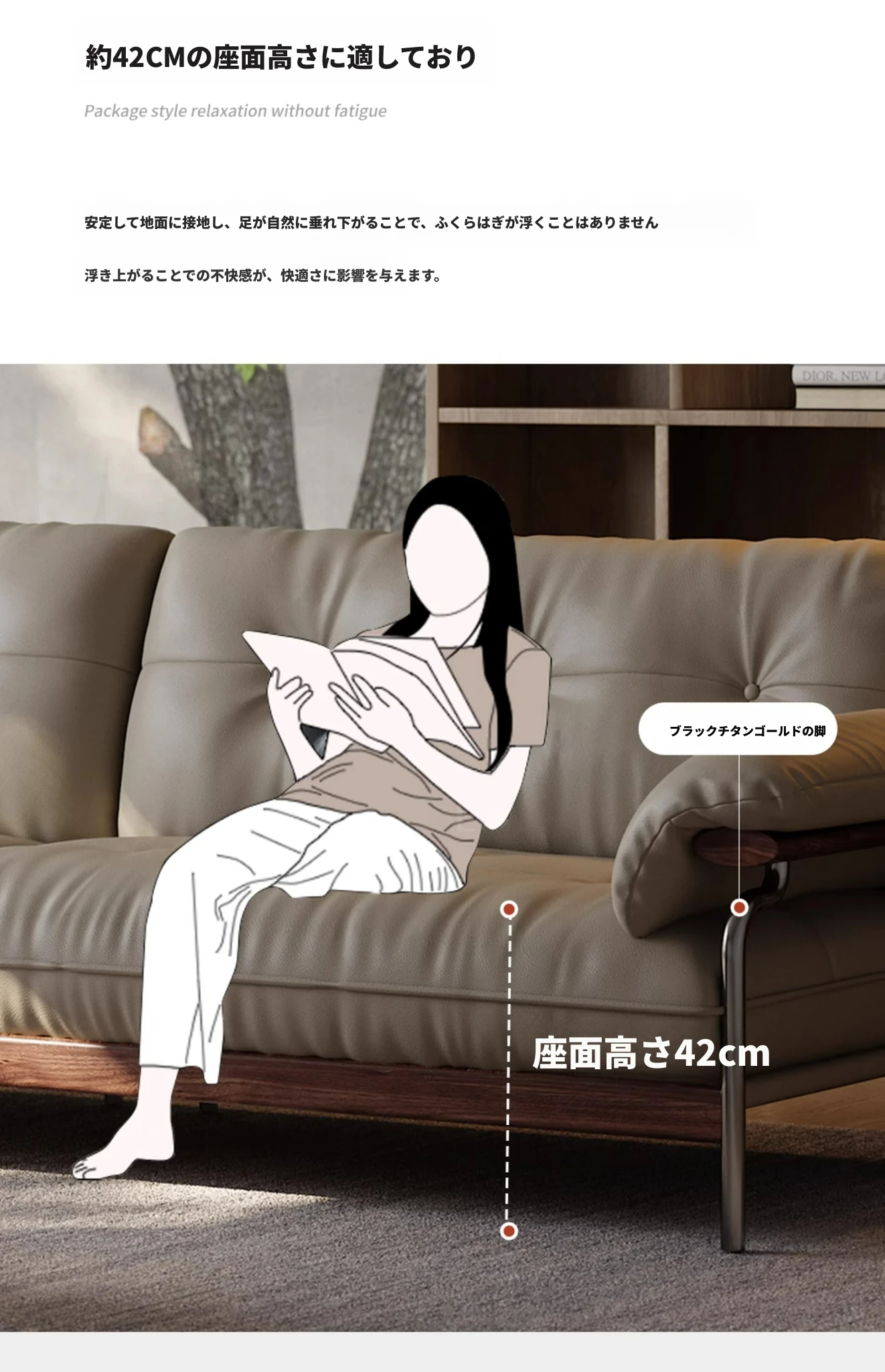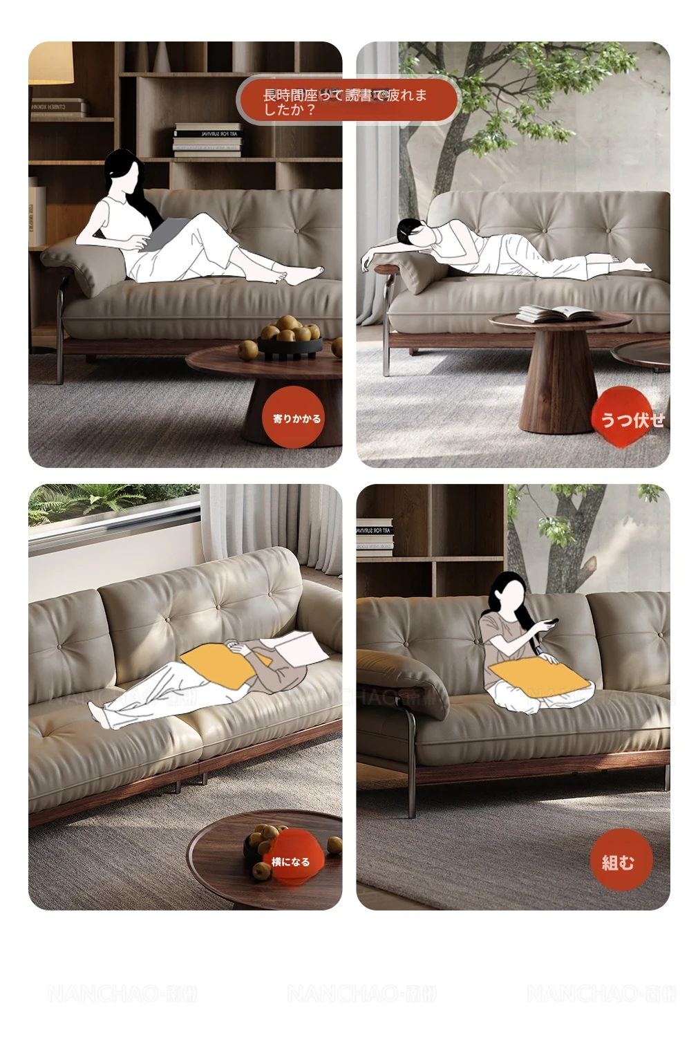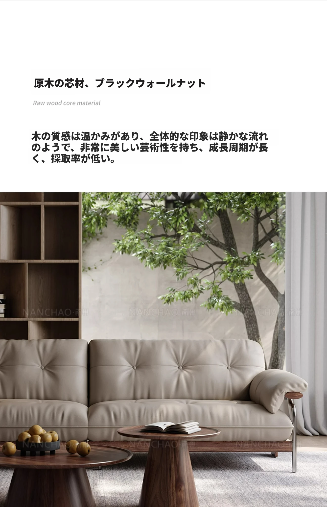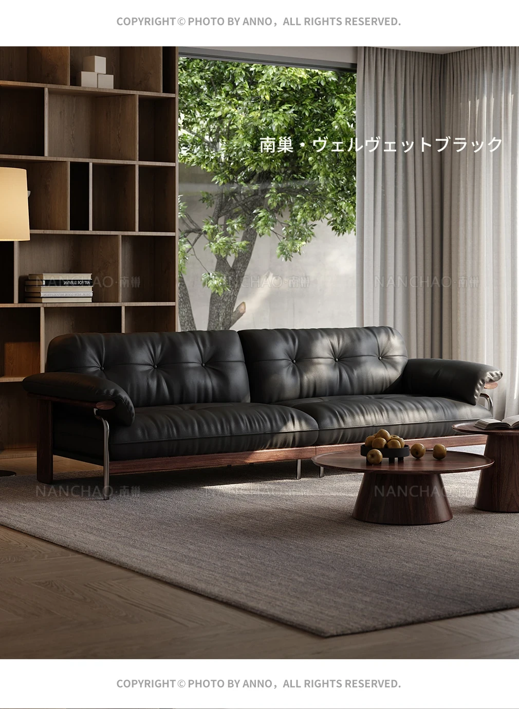 高級感あふれる本革ソファー - ブラックウォールナット無垢材使用、全居室対応!2025年新作、小型住宅向けのスタイリッシュな直排デザイン、上質な黒色でインテリアを格上げ!