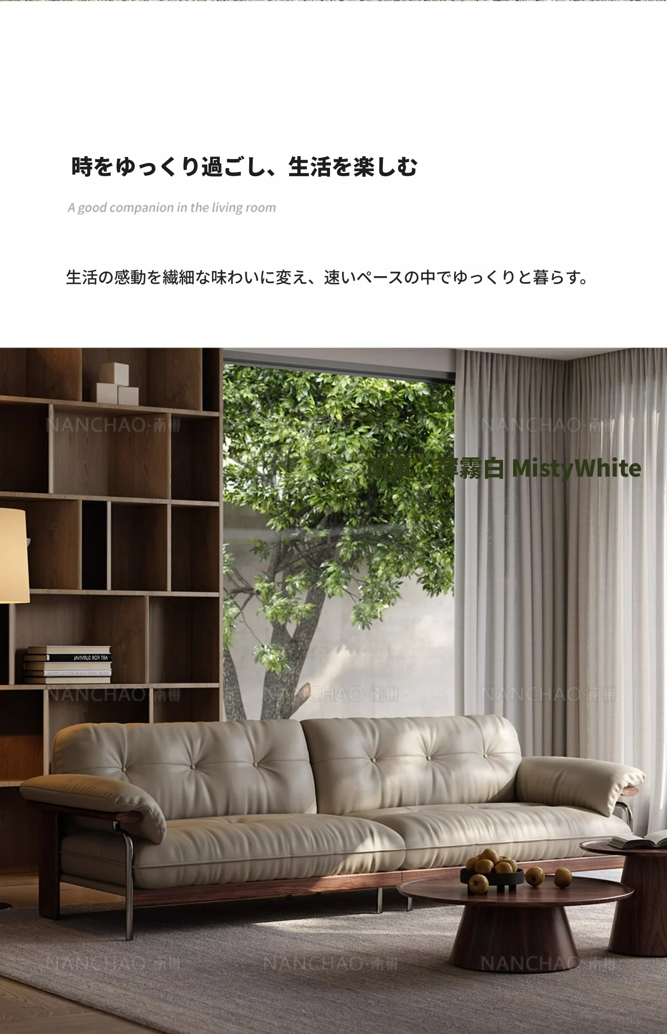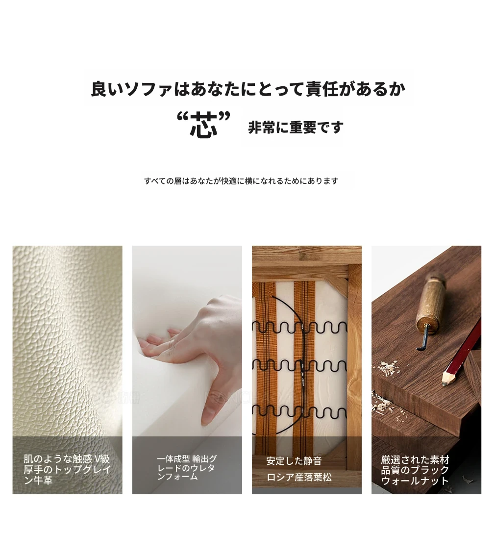 【フラッグシップ版-260cm4人掛け】V級厚手トップグレイン牛革+黒胡桃木+高反発ハニカム通気一体型スポンジ+白ガチョウ羽毛
