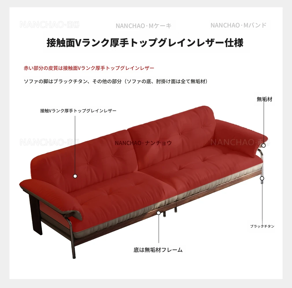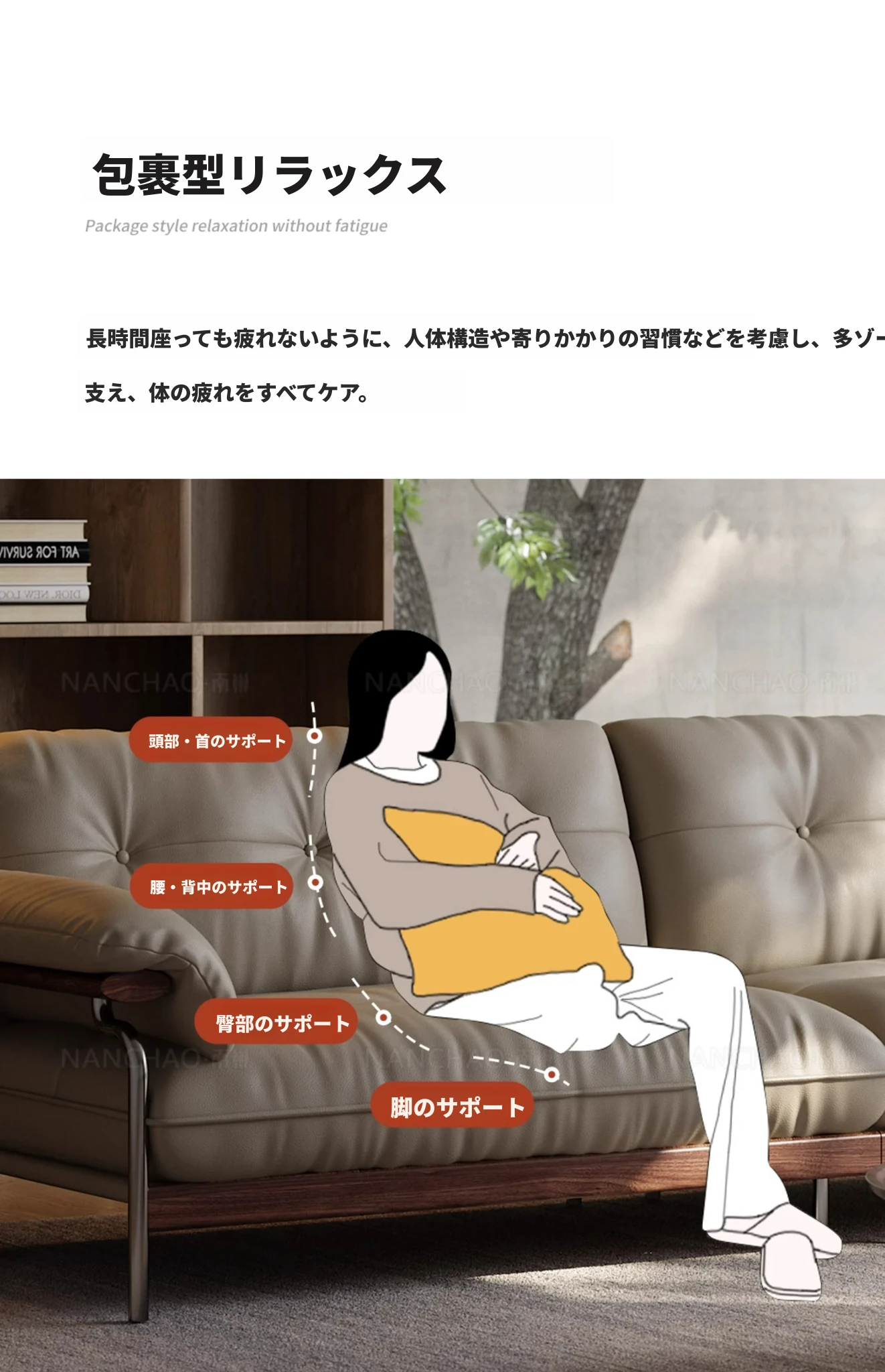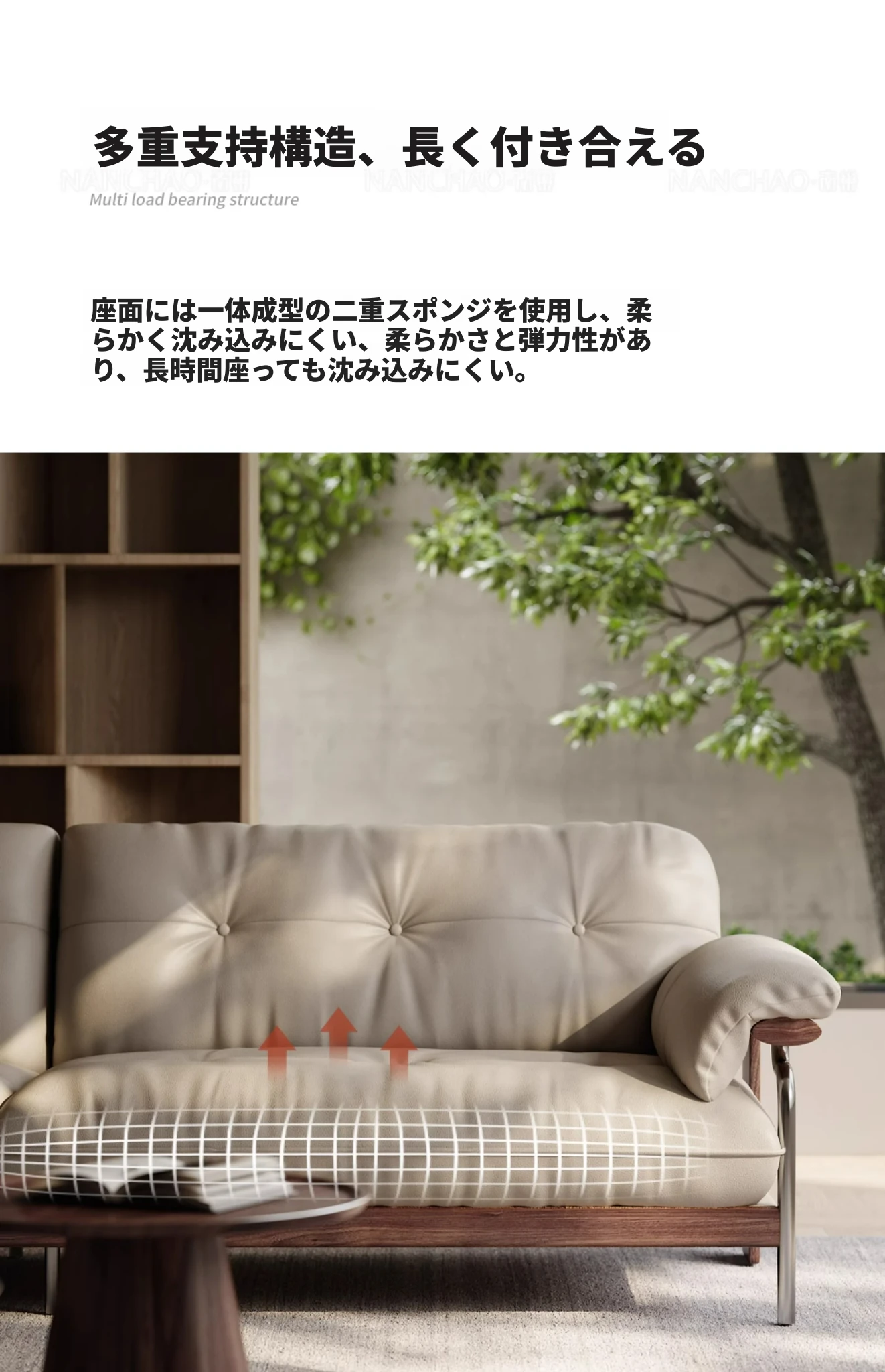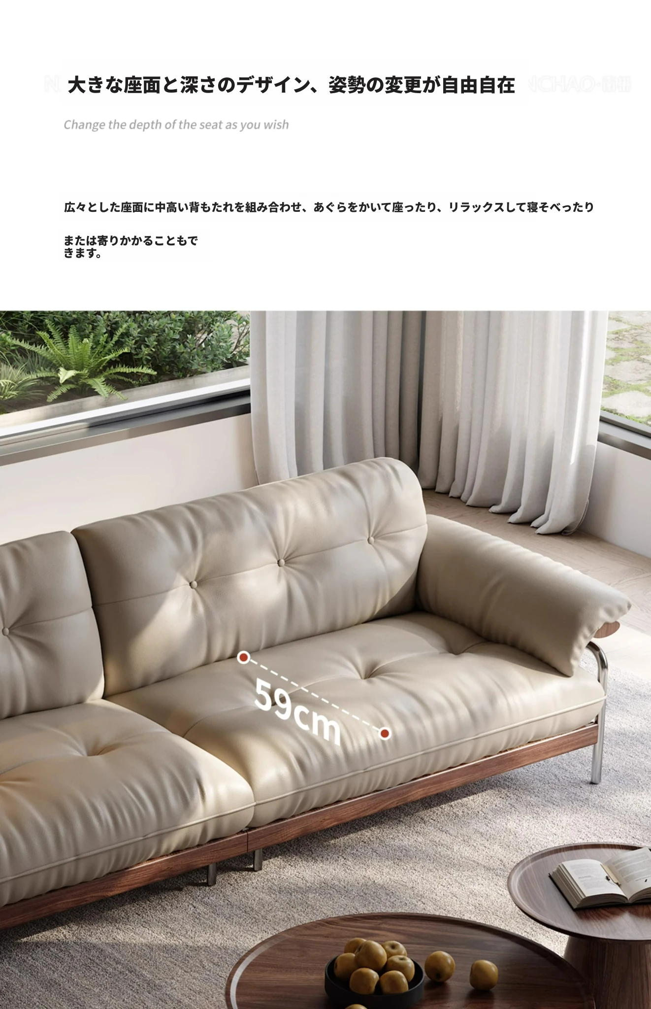【フラッグシップ版-220cm3人掛け】V級厚手トップグレイン牛革+黒胡桃木+高反発ハニカム通気一体型スポンジ+白ガチョウ羽毛