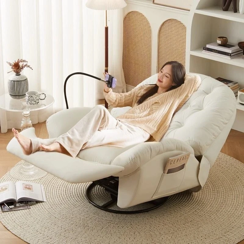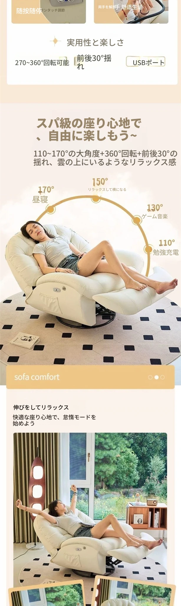 リラックスしたいあなたにぴったり!回転式の電動リクライニングソファ - 多機能の宇宙スタイル、寝室やリビングに最適な一人用ロッキングチェア。心地よいくつろぎを手に入れましょう!