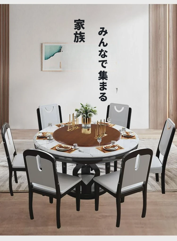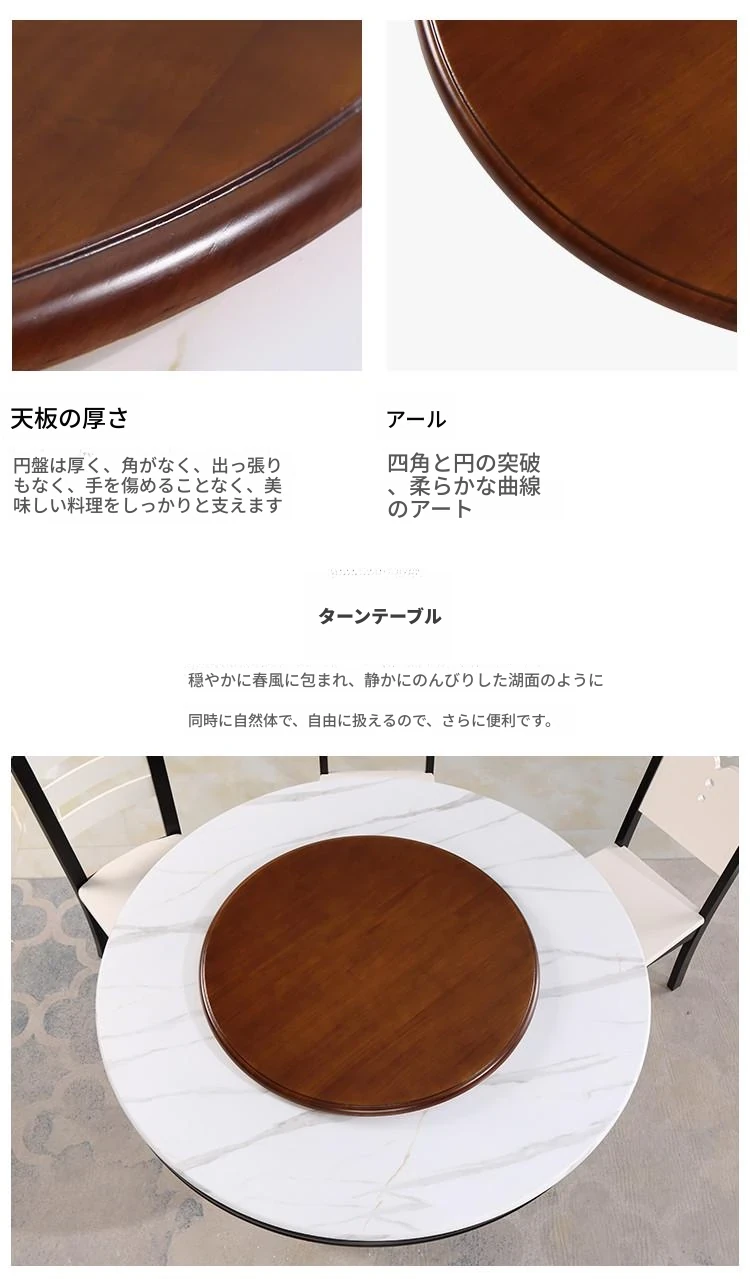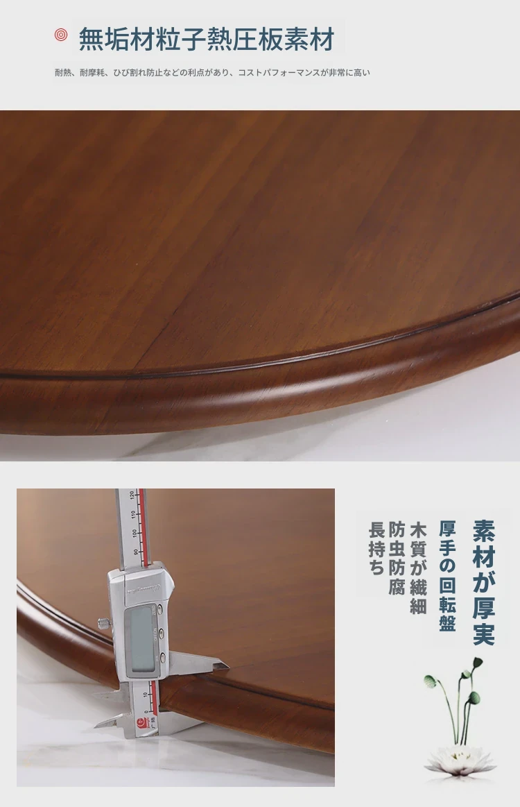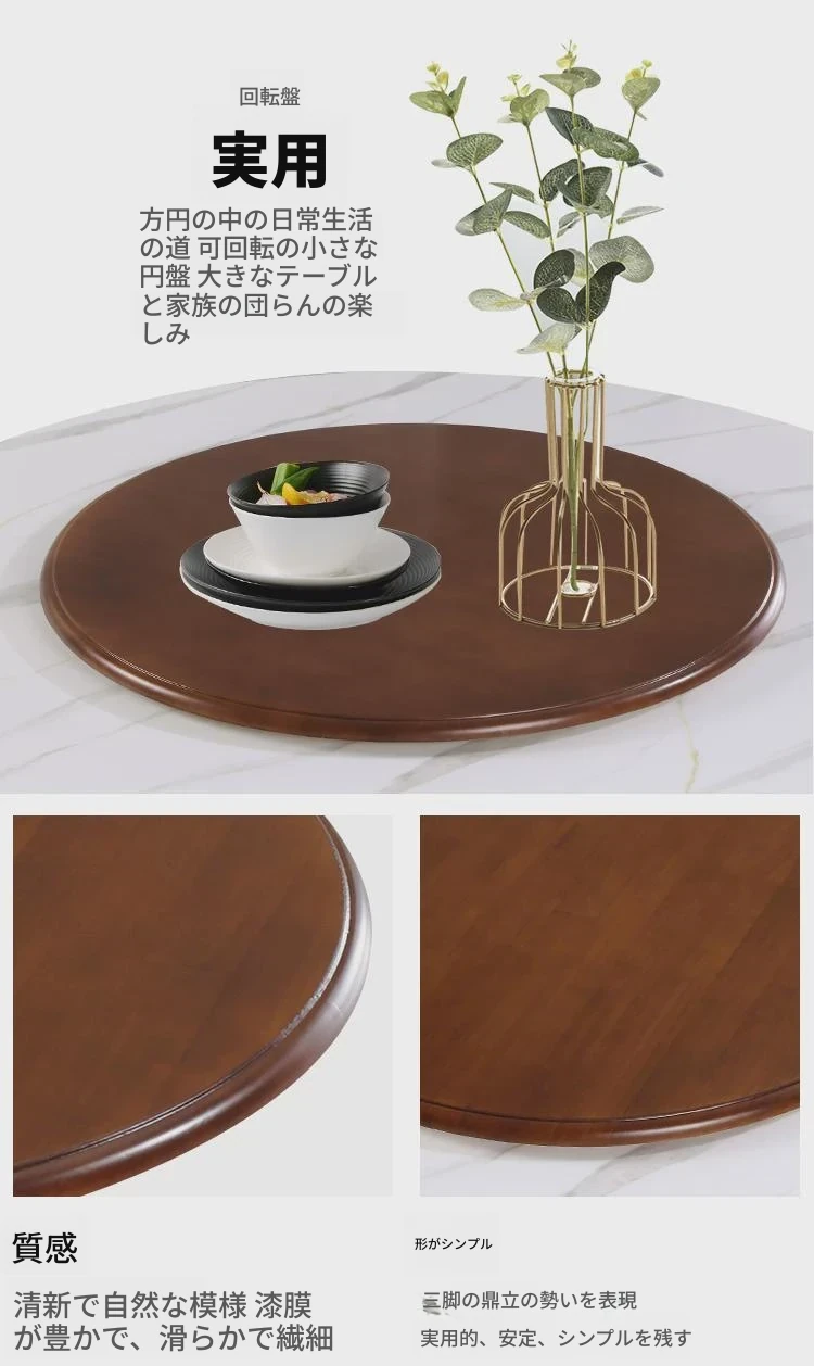 天然木製回転テーブル - 家庭用の丸型ダイニングテーブル、便利な回転機能付きで、食事をより楽しく!高品質な素材で作られ、スタイリッシュなデザインが特長です。どんなインテリアにもぴったりです!