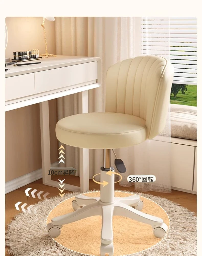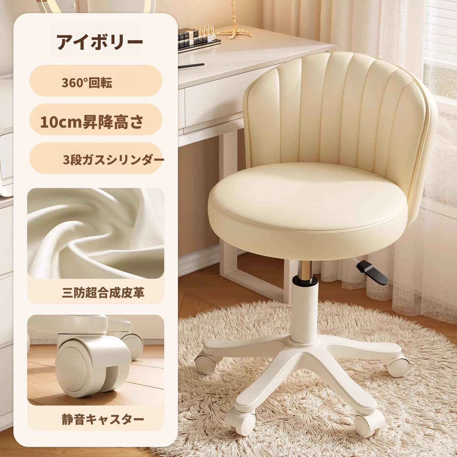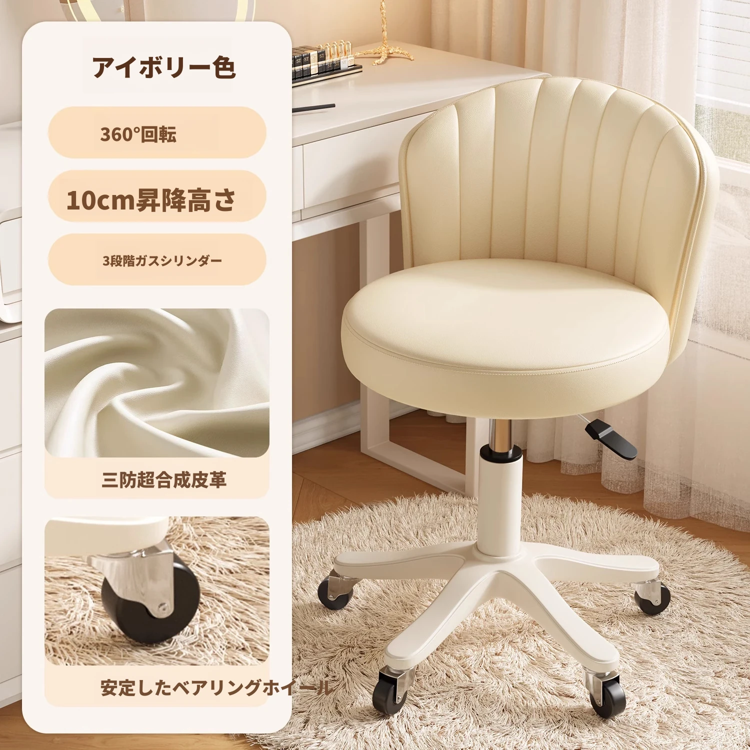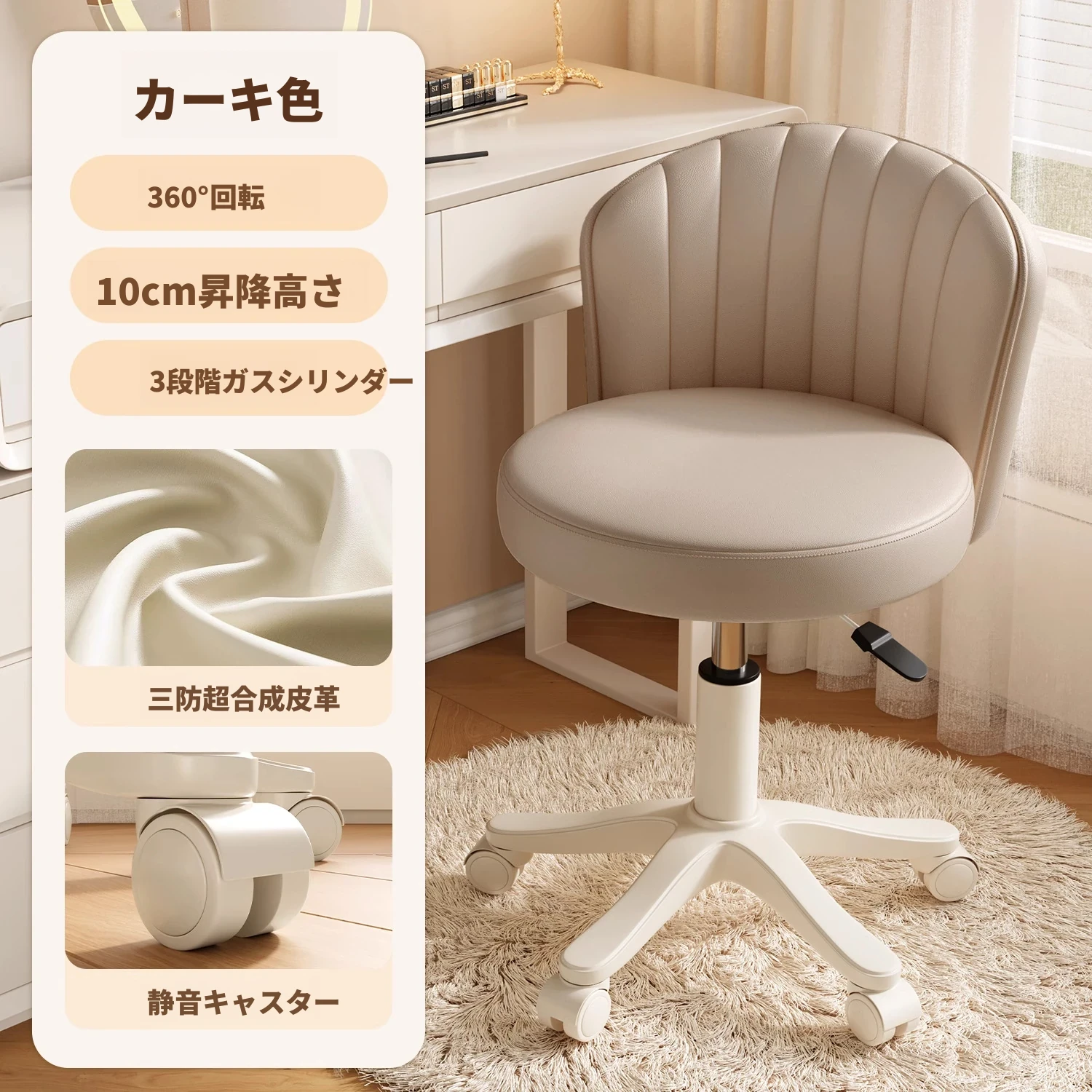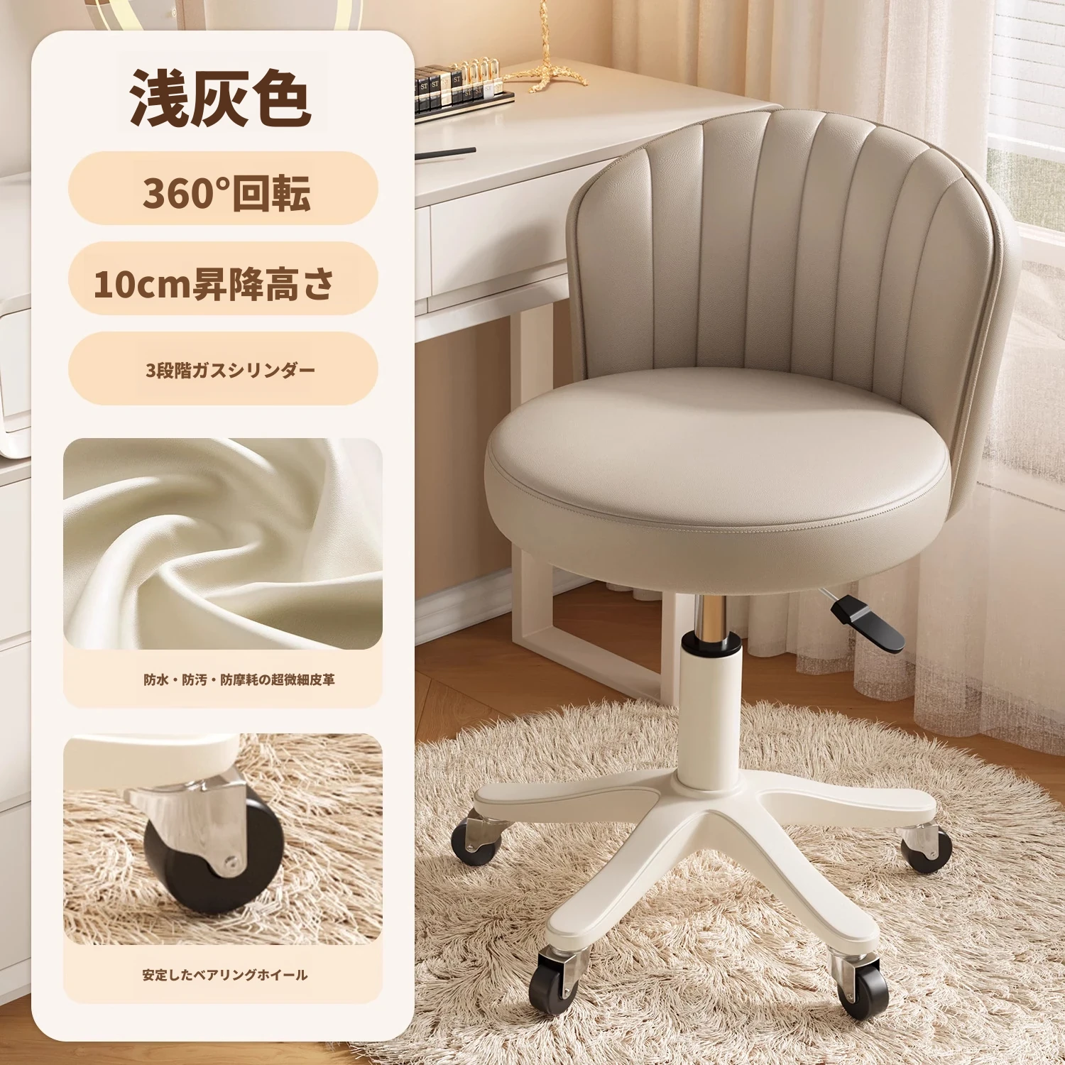 シンプルなメイクアップチェア、滑らかなキャスター付き美容院用高機能作業椅子!理髪店やネイルサロンにも最適な昇降式回転椅子。家庭用ドレッシングスツールとしても使える、スタイリッシュで便利なアイテム!