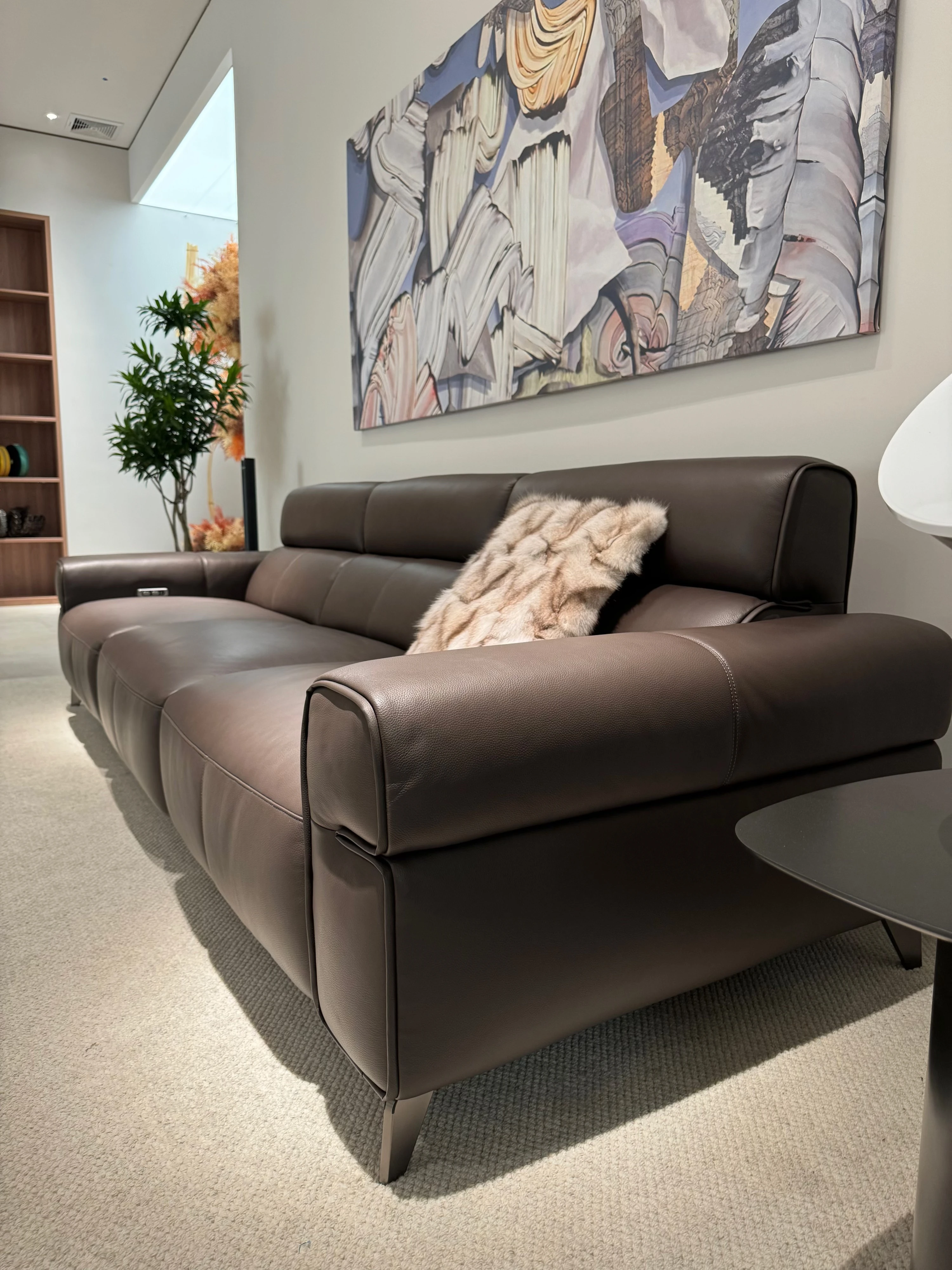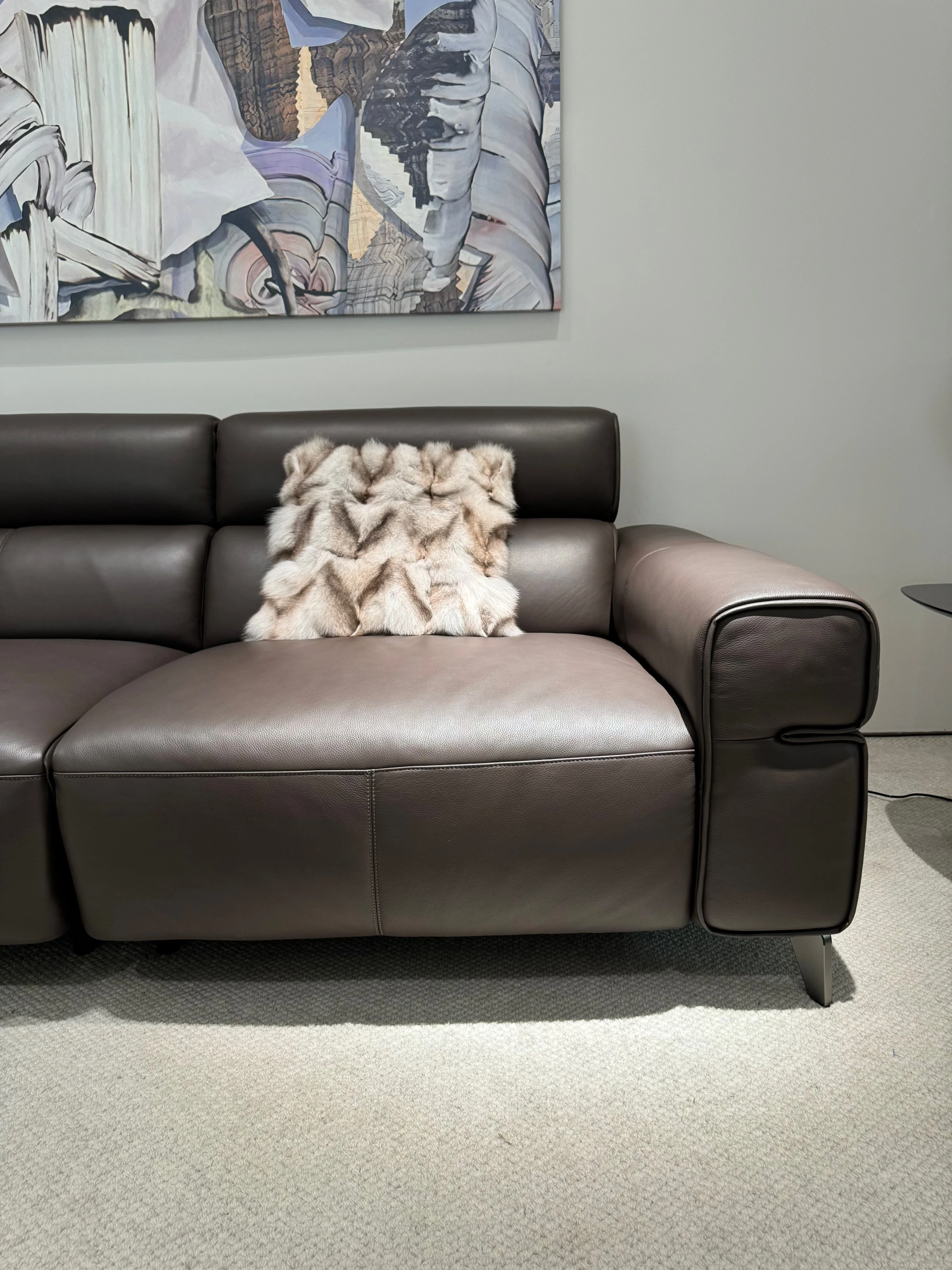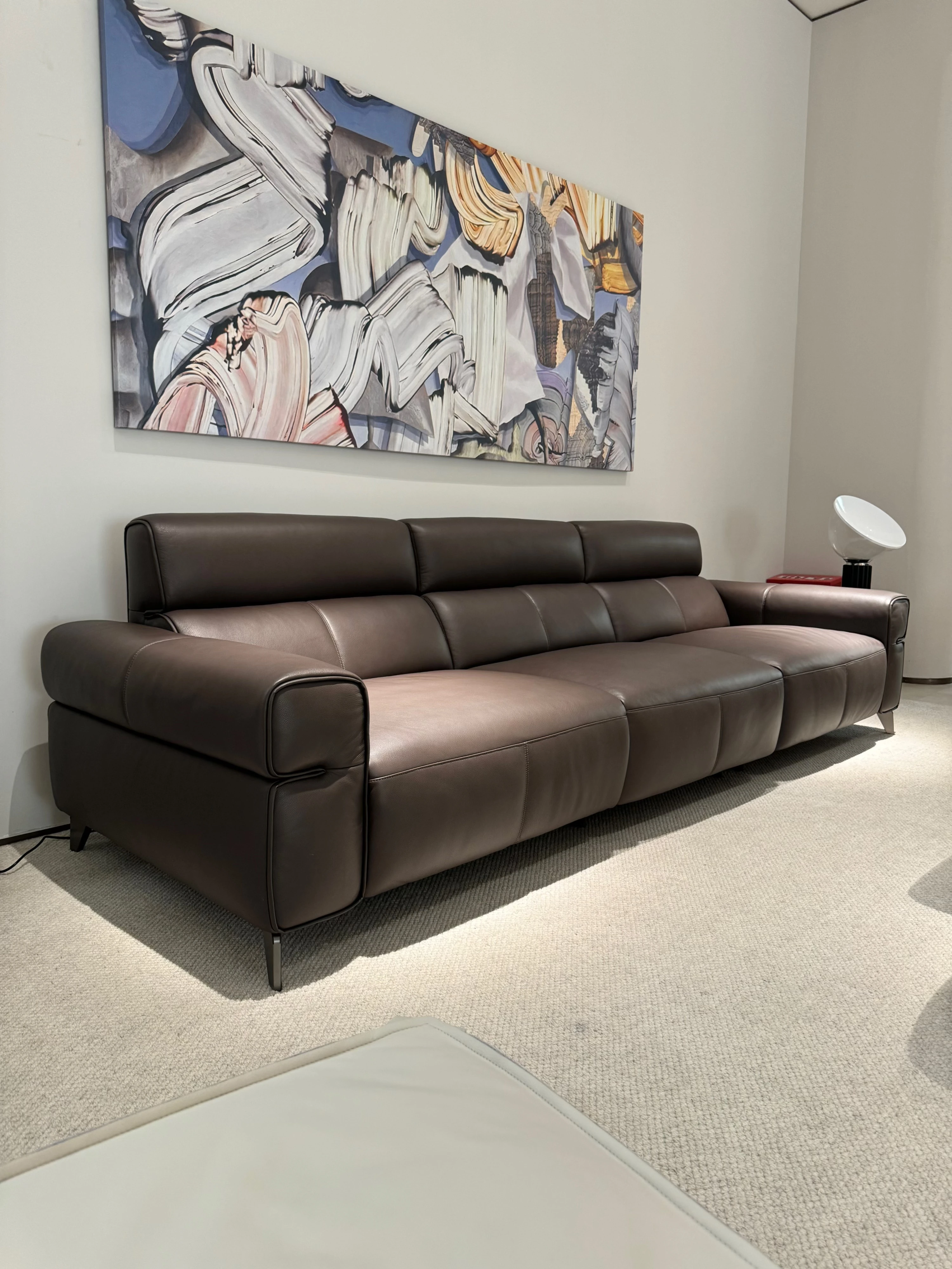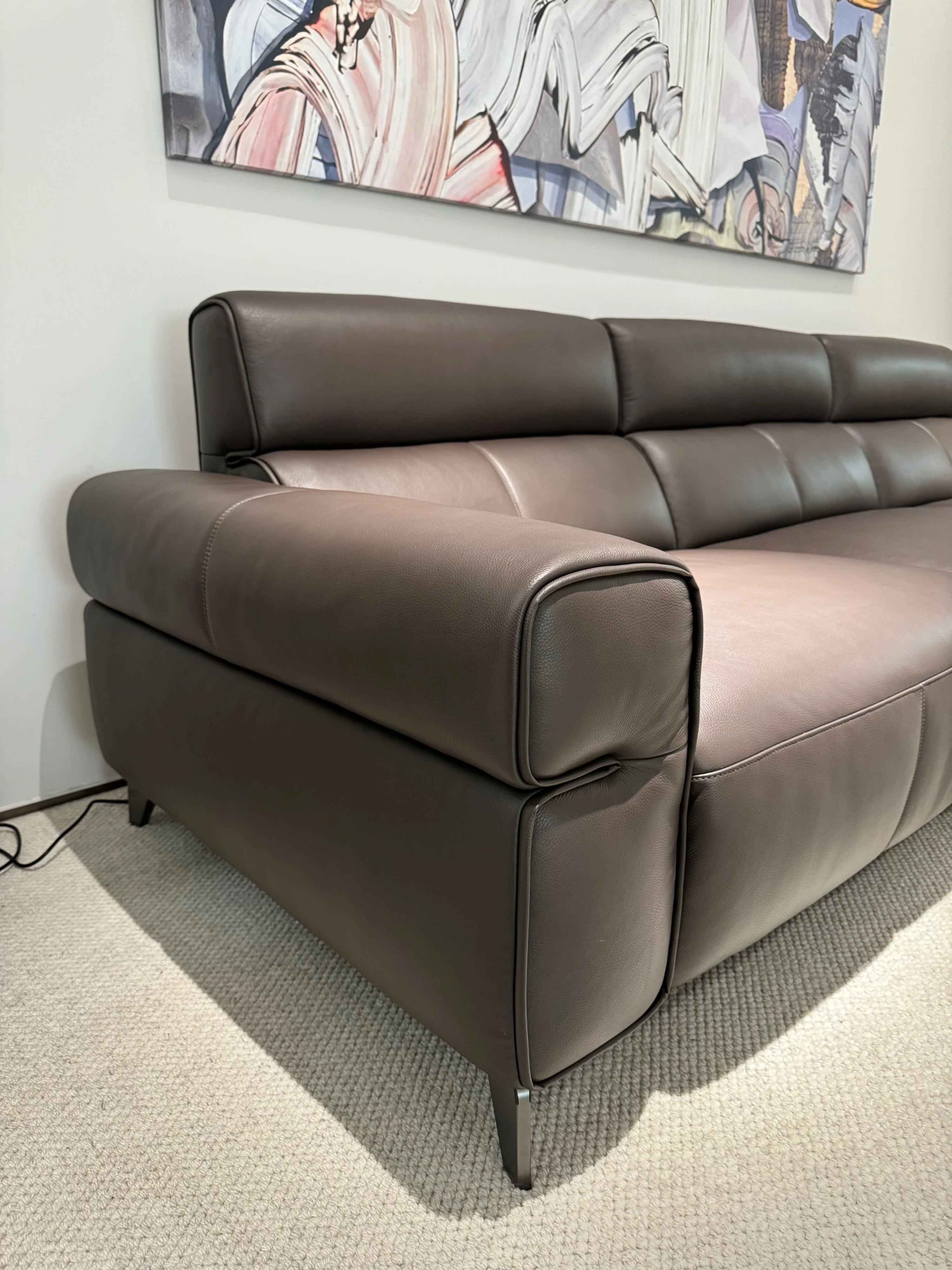壁に寄せずに置ける多機能本革ソファ - スリムな一字型、小さな部屋にもぴったりなリラックス用イタリアンミニマリストソファ!快適な座り心地と洗練されたデザインで、あなたの生活空間をスタイリッシュに演出します。