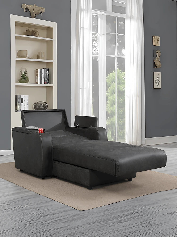 多機能本革ソファ 電動リクライニングソファベッド 小型アパート向けリビングルーム用 ラウンジチェア バルコニー用シェーズロング