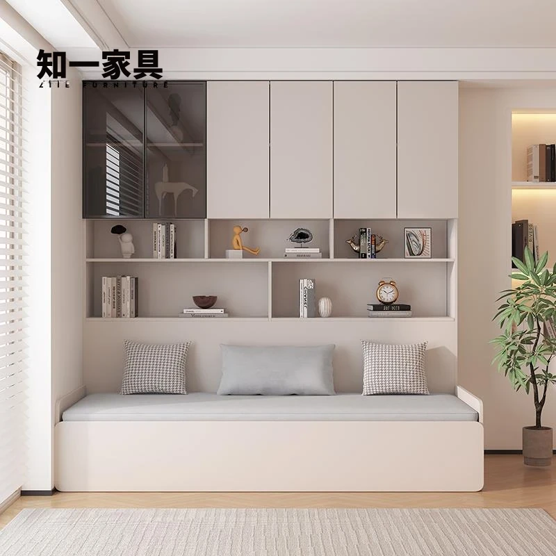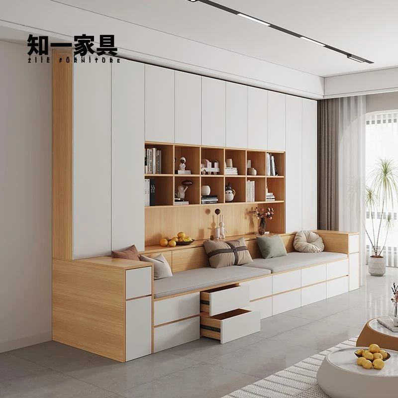[香港送料無料] ソファと本棚が一体化した多機能リビング壁面収納!快適なカウンター席付き書架で、家族みんなが楽しめる理想の空間を実現!
