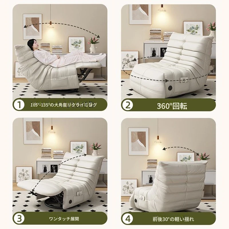 リラックスできる回転式電動リクライニングチェア!多機能な宇宙型ソファで、寝室やリビングにぴったりの一人用アームチェア。快適なひとときをお届けします。