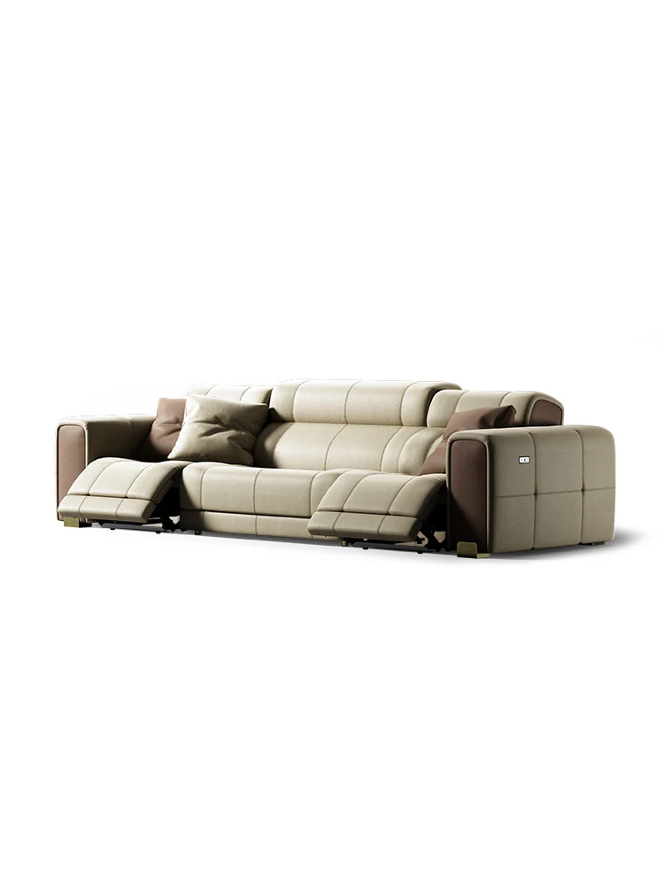 壁に寄り添わない豪華電動ソファ|真皮製で洗練されたミニマリストデザイン|多機能175cm|贅沢なヴィラのリビングに最適!